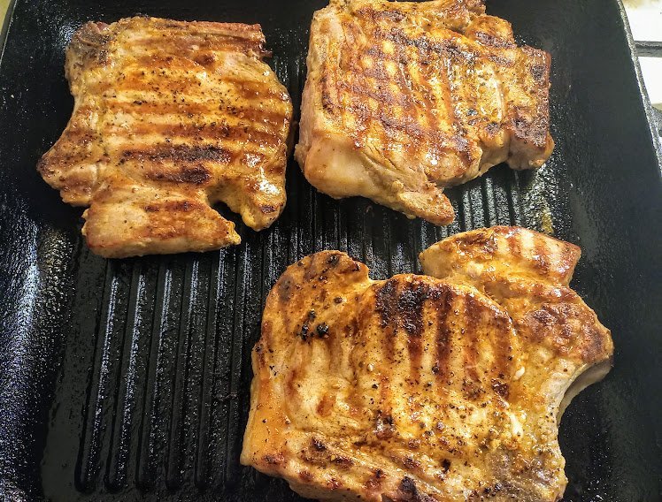Пилешко бонфиле с лук и чушки на тиган