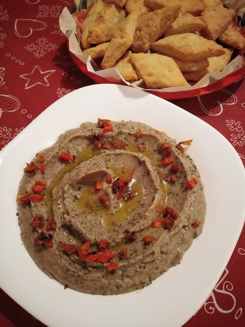 соленки и хумус (боб мунг, мента и сушени домати)