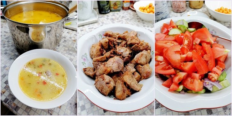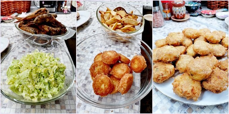 В дискусията се споменават различни видове ястия, включително пиле с картофи и лук, хляб, ребра с кожа, пилешко филе на тиган, пица сандвичи, картофена яхния със зелен фасул , мусака, панирано рибно филе с пържени картофи , телешко варено , бургери , шаран , сьомга на грил, пъстърва с лимон във фурната, телешко филе с есенни зеленчуци, гофрети, мекици, палачинки, равиоли, руло Стефан и други.