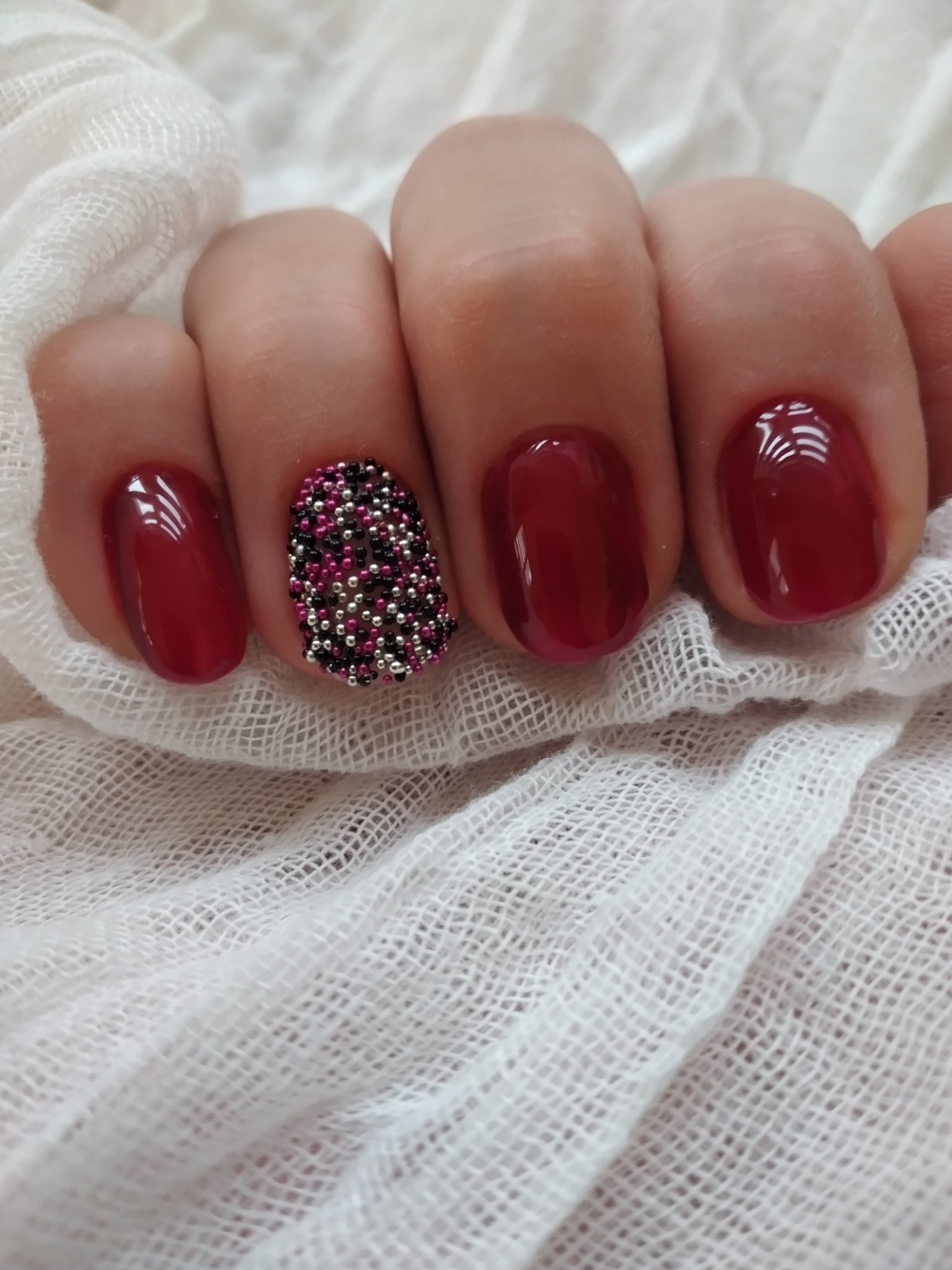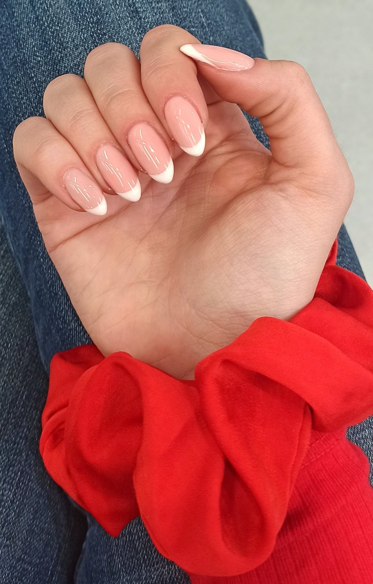 Как се прави брокатен и млечен маникюр, подобен на тази снимка?