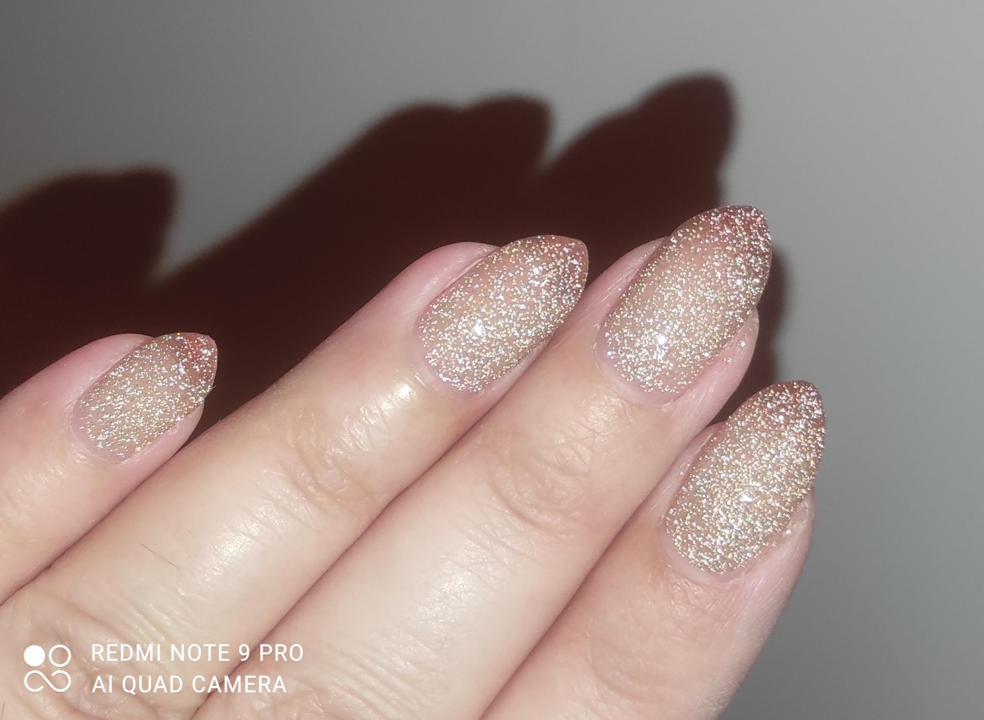 Как се прави брокатен и млечен маникюр, подобен на тази снимка?