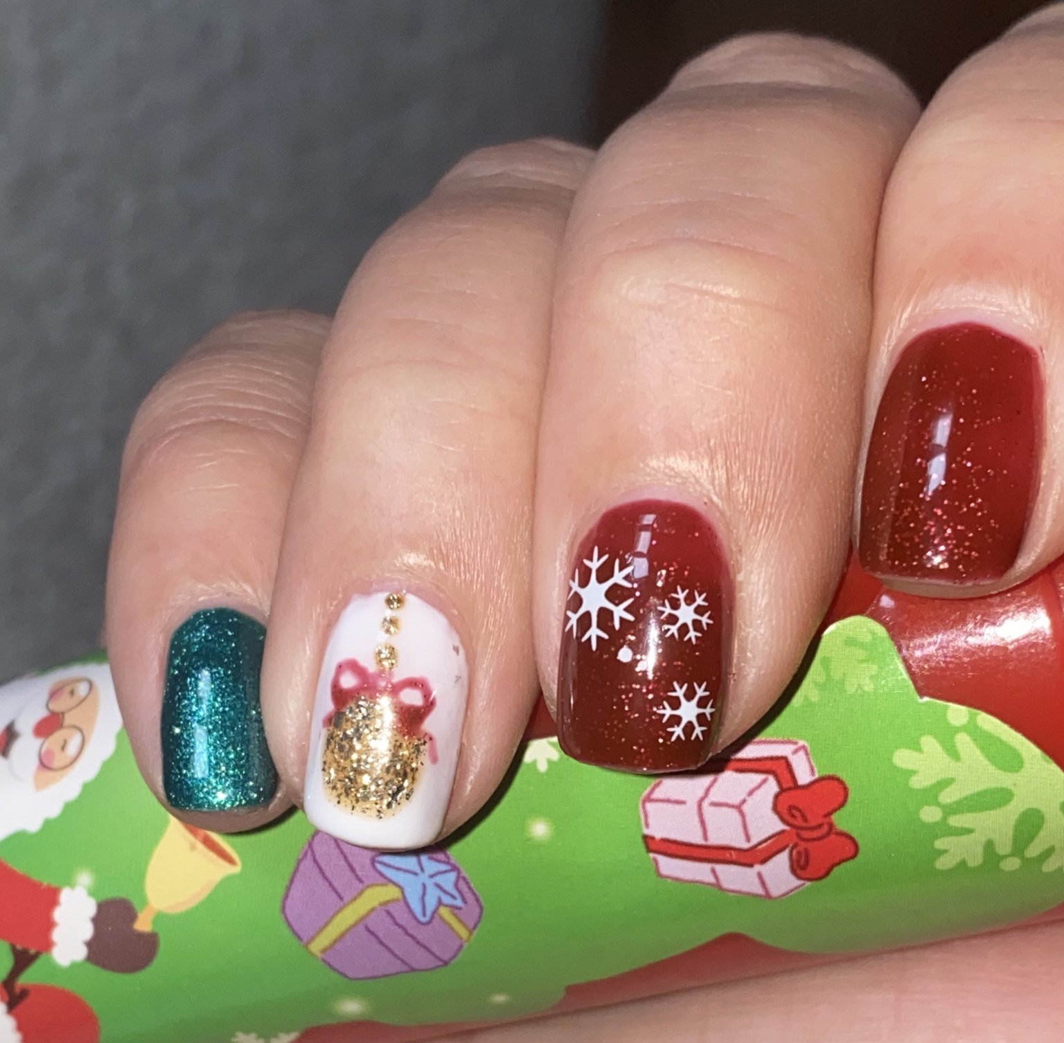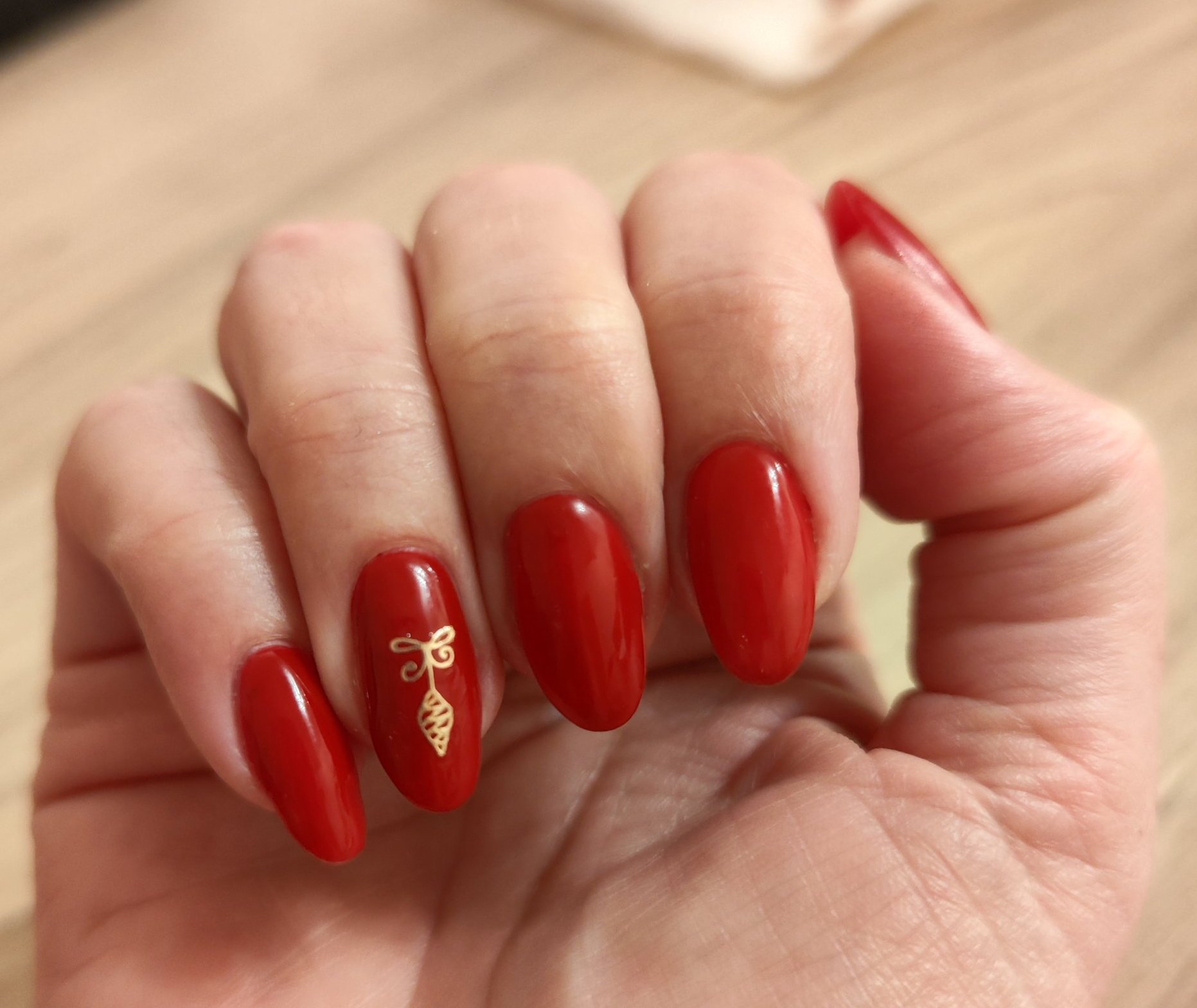 Е ми... това е новия ми маникюр. Семпъл, изчистен и достатъчно коледен за мен. 10 снимки направих и никоя не е както трябва. Ако дадете някой съвет за снимане няма да е излишно. И някакво подобно червено не е зле да си намеря. Това е едно китайско, доста старо, но ми се видя подходящо за празниците.