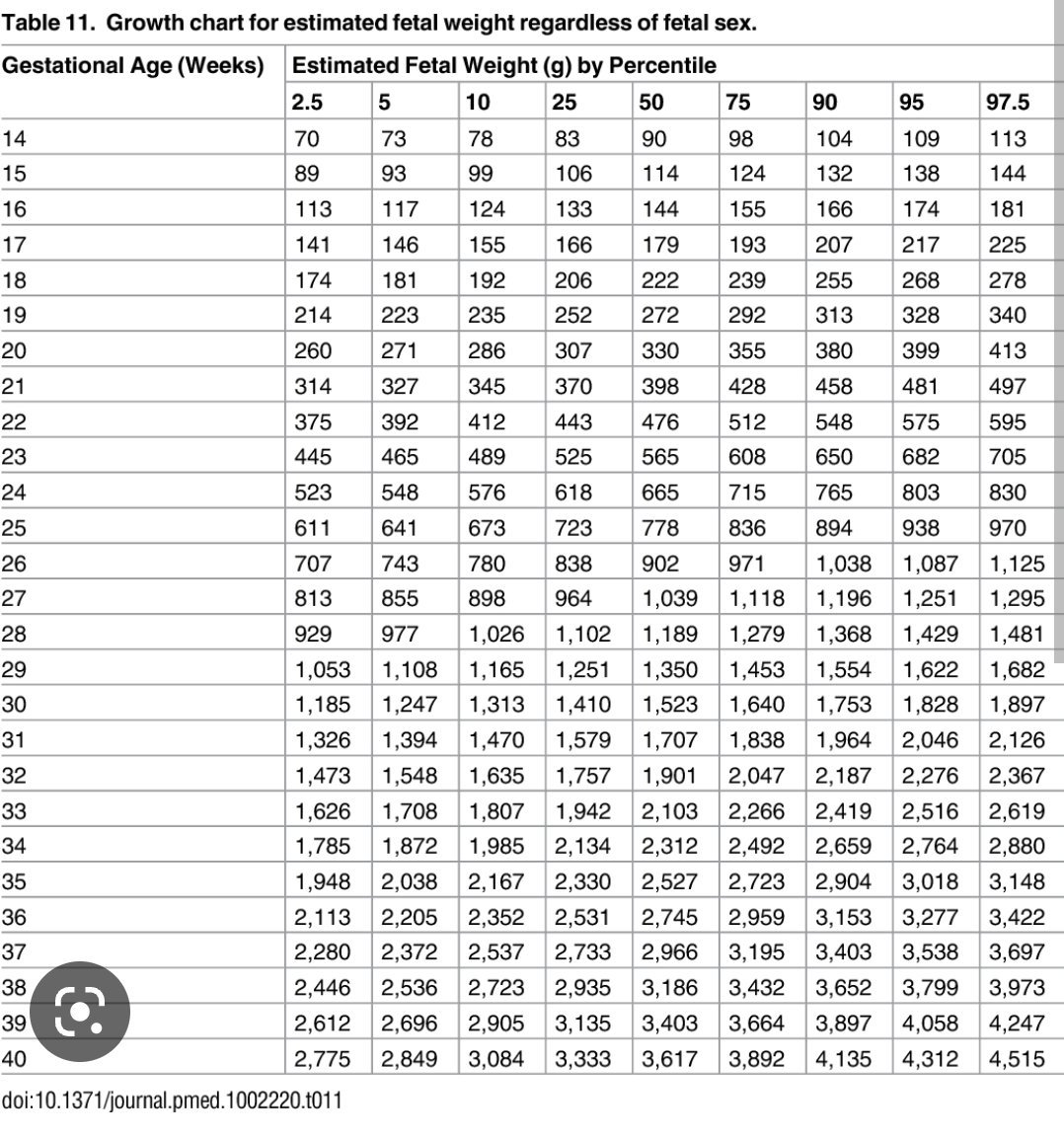 Момичета, поствам едни референтни стойности на Световната здравна организация за детайлно тегло по седмици по перцентил. Перцентила ако някой не знае - 25 перцентил означава, че 75% от бебетата в тази седмица тежат повече и т.н. Fetal weight calculator per week per percentile.