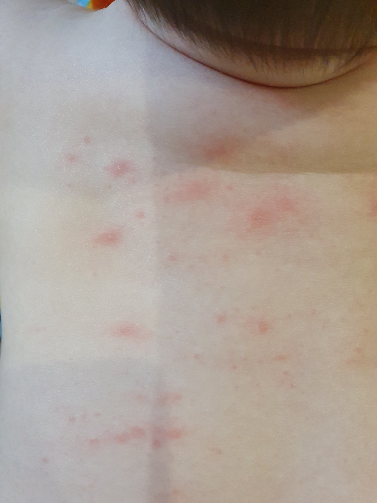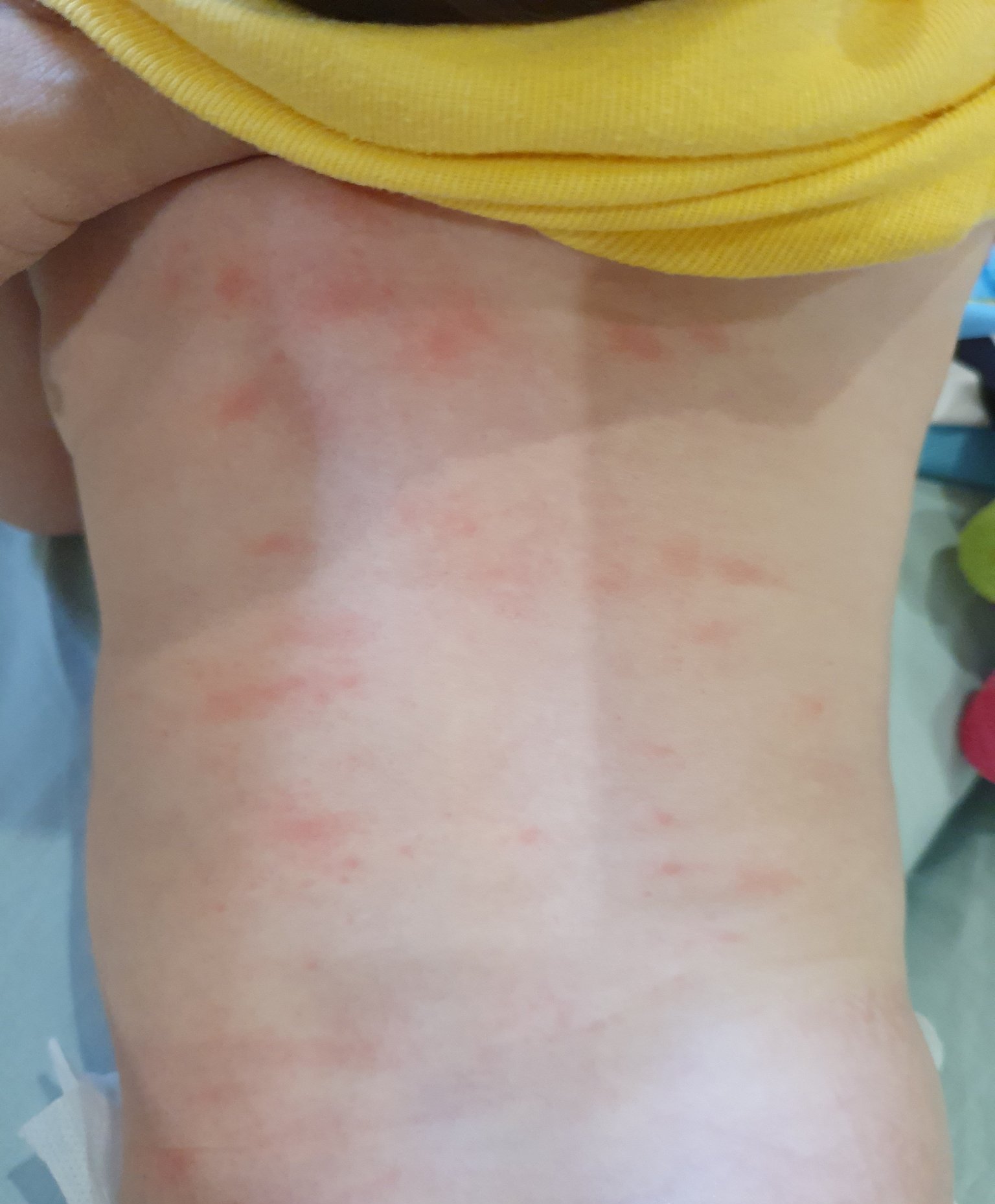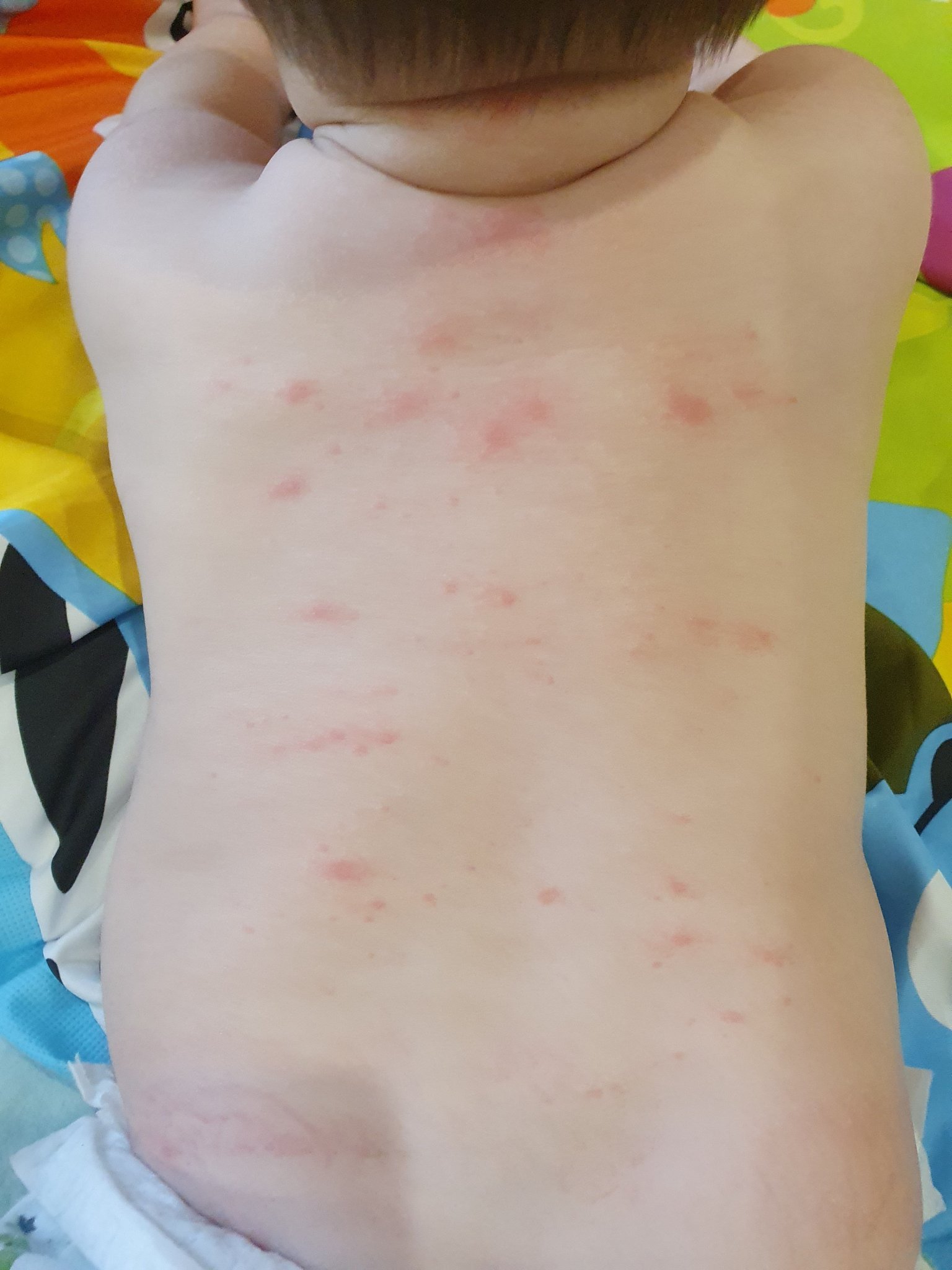 Момичета, Марти е с обрив по цялото гръбче. Звънях на личната, но няма вайбър за да й покажа. Изпраща ме в спешното, защото в дежурния кабинет нямало педиатър. На мен хич не ми се иска да го водя там, защото ще ме въртят  много и при толкова болни...За капак цял ден ще съм сама с двете деца. Снощи спа неспокийно, не че е нещо нечувано досега, но не съм сигурна от кога е, дали от снощи, през нощта или от сутринта. През нощта сменях памперс, но не съм обърнала внимание, защото стаята е леко осветена.