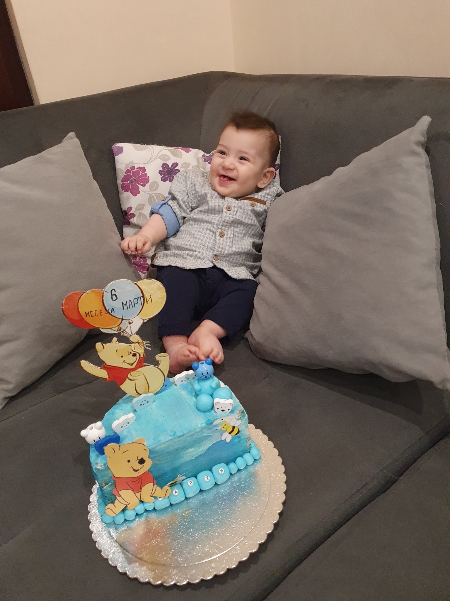 Днес съм много щастлива, защото моето пухче стана на 6 месеца ( докато напиша стана утре, но да се разбира на 30.12). Ние обичаме да си създаваме поводи за празнуване, затова си отбелязваме всичко. Майка ми ни направи тортата, снимахме се и ни беше хубаво. Бяхме си четиримата, но ни беше идеално. Heart