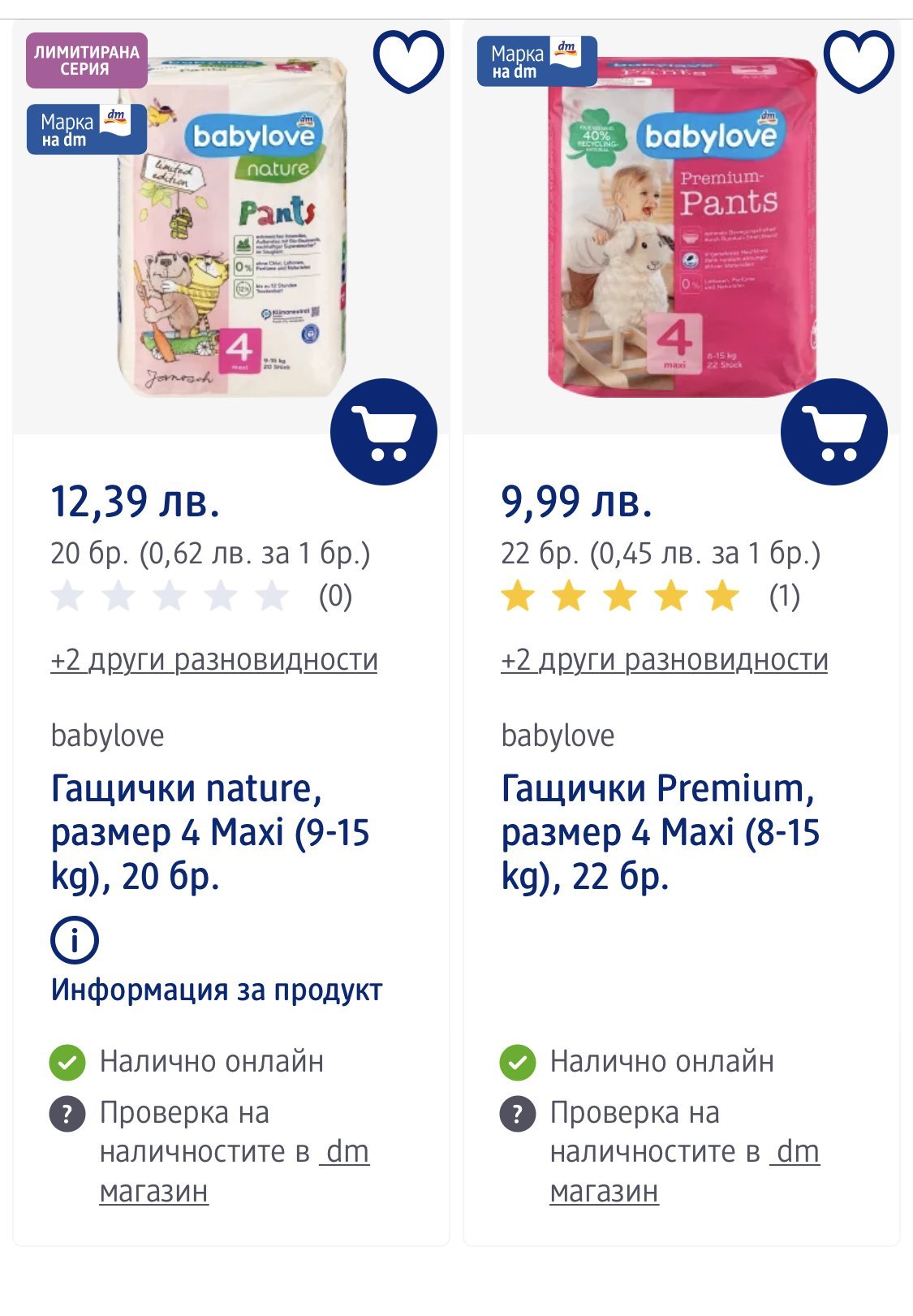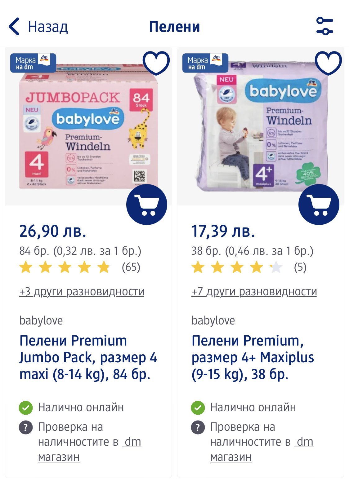 И ние сме на babylove. Аз и памперс си харесвах, но ММ преспочта ДМ-ските и вече няколко пакета сме с техните. Взимаме 4, макар че вече и 4+ ще й стават.