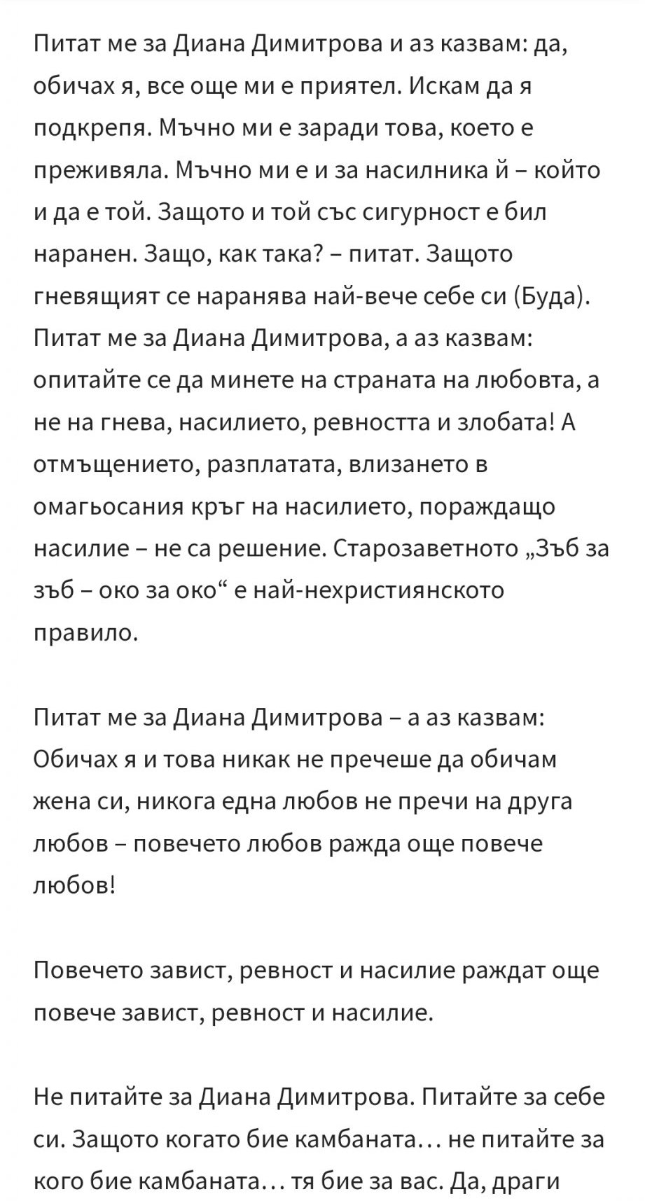 И, не, категорично не съм за насилието, още повече от мачовци към жени, но Диана изгуби  моето доверие, защото точно знам кога става дума за такова. А не публично /пред свидетели/ да скачаш и да се ерчиш на някого до степен той да бъде принуден да те балансира физически.
