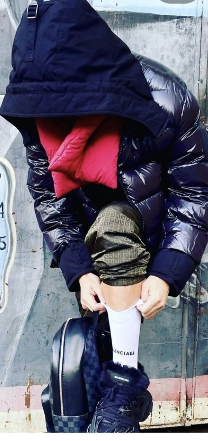 На снимката е със същите чорапи и обувки Баленсиага.