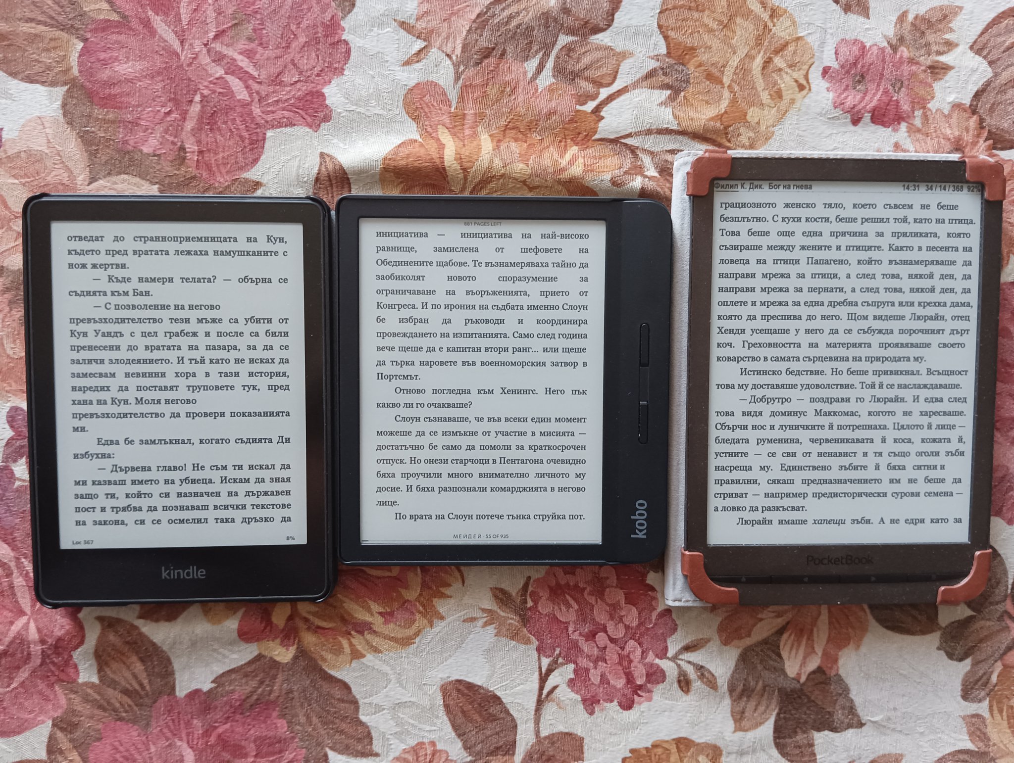 Виждам излизат нови модели на Покетбук. Ако имат добри фонтове и контраст, виждам, че имат text-to-speech и големи екрани. Изглеждат по-добре от моделите на Киндъл, които отдавна не предлагат никакви интересни функции и са застинали във времето. Казвам го като човек използващ Киндъл. (Новият им Скрайб не ми е интересен.)