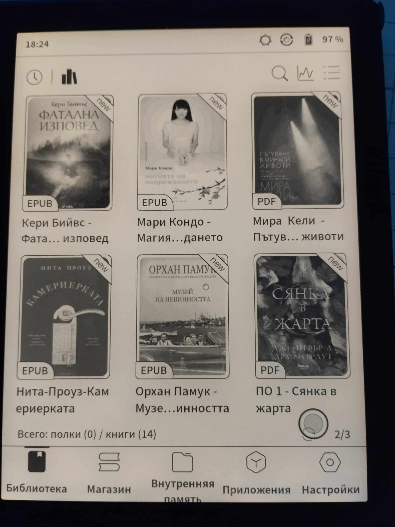 Преди книгите се появяваха с корицата.Не знам, какво съм направила.Чета спокойно, книгите са във вътрешната памет.Когато чета трябва да запомня страницата, а преди направо се отваряше на тази, на която съм спряла.Четецът ми е подарък, много си го харесвам.