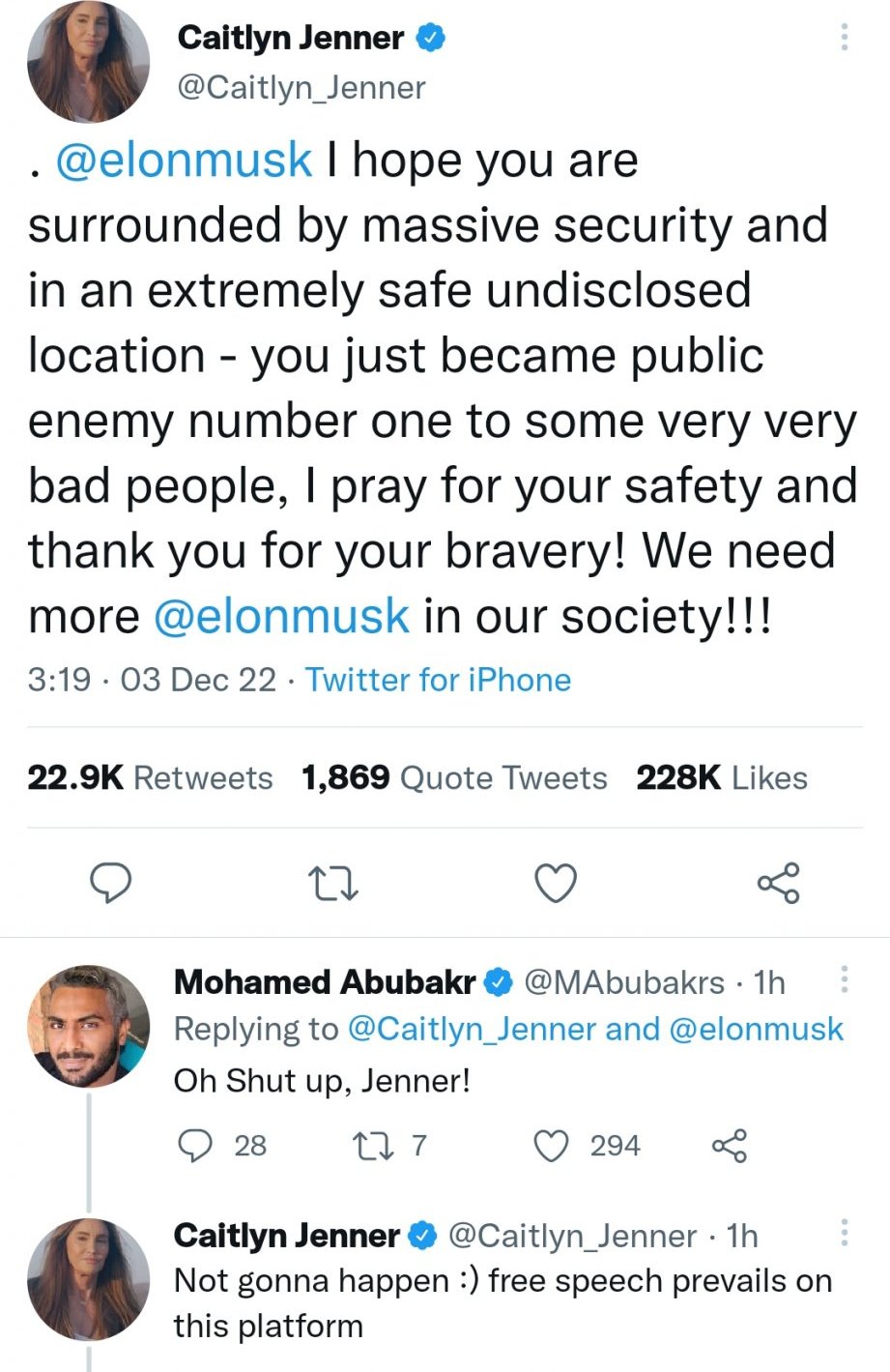 А Кейтлин Дженър изразява притеснението си за сигурността и живота на Мъск: