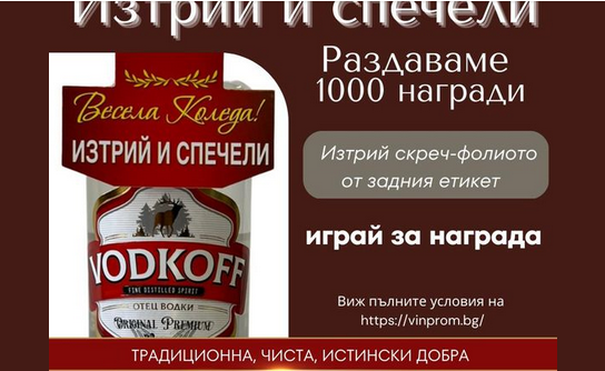 Игра с покупка на водка Водкофф с промо етикет от определени търговски обекти, обозначени с рекламни материали: