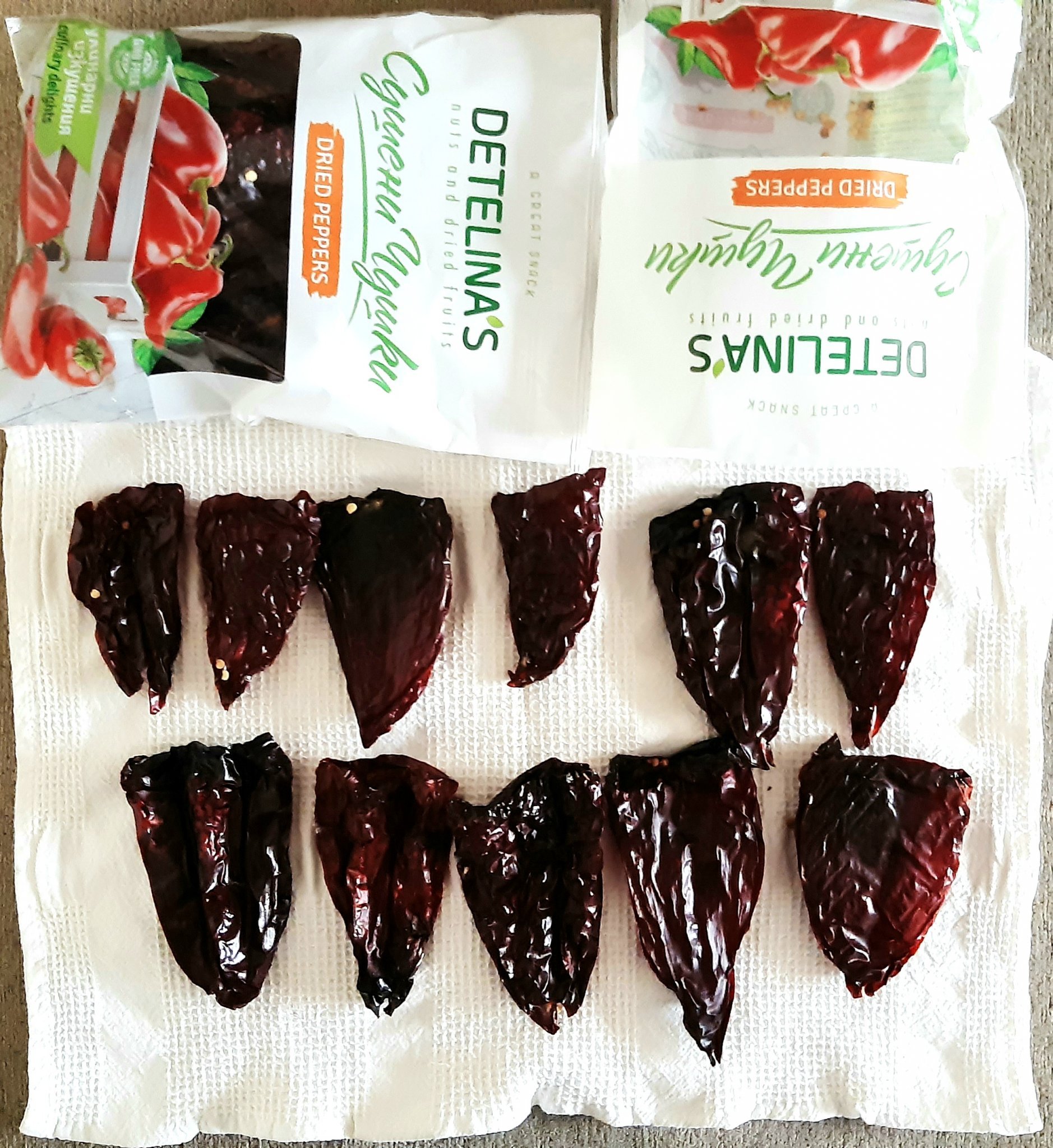 Моите сухи чушки са взети от Ф., май някакви македонски са, но пликът им е прозрачен почти целия (има и фирмено лого, не е изцяло) и още в магазина може да се види какво има вътре. Нямам към тях забележки съответно.