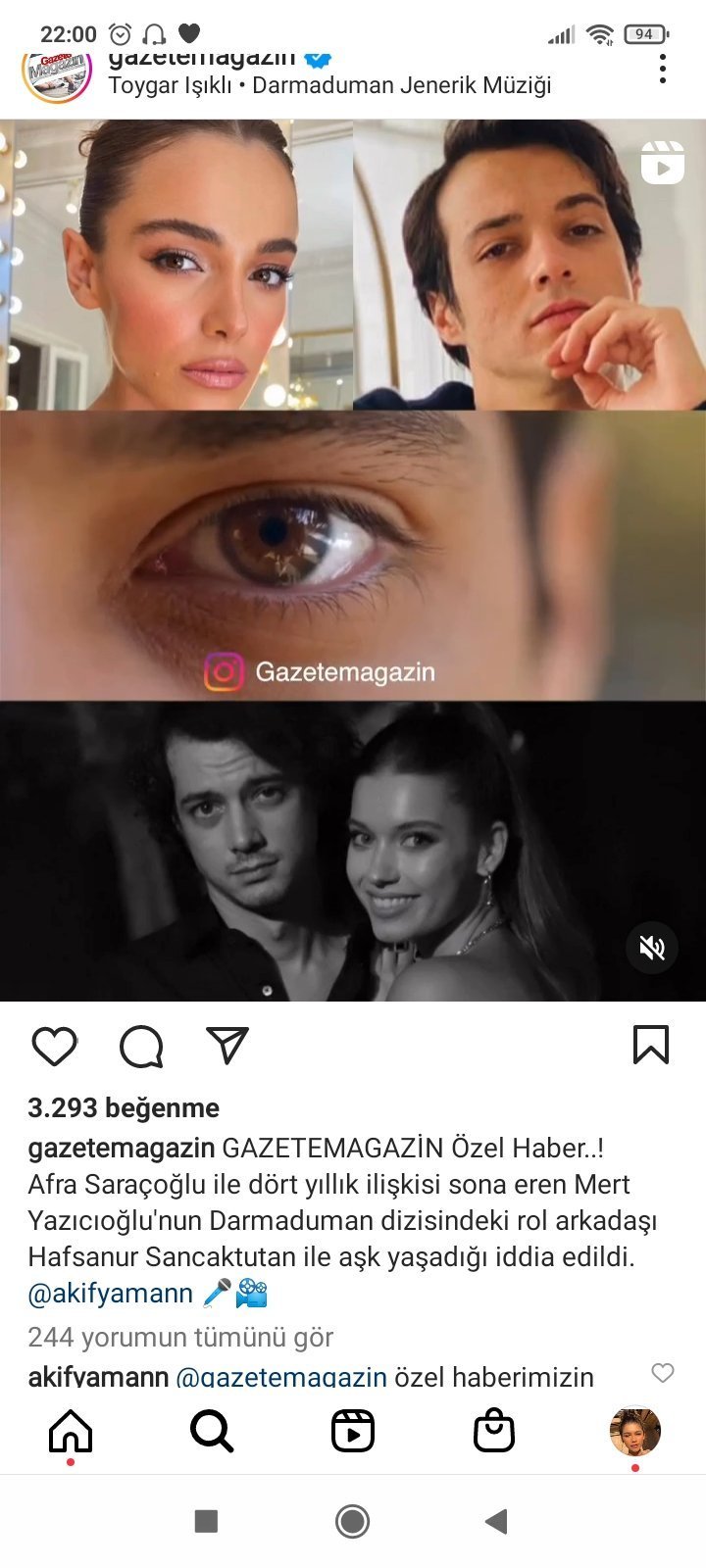 Афра Сарачоглу, която играе главната роля в сериала "Yalı Çakını" с  Мерт Рамазан Демир, от известно време показва близост с него и поради тази причина попадна под острите критики на своите фенове. Според получената информация тази близост е притеснила и нейния приятел от 4 години Мерт Язъджъоглу.