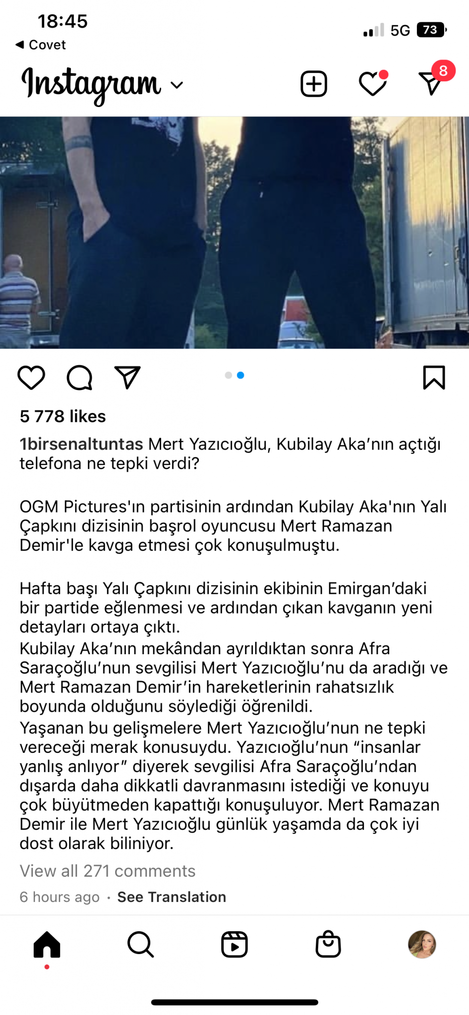 Марбела, продължение на случката малко тук. Накратко, след като отпратили Кубилай от заведението, той се обадил на гаджето на Афра, заз да докладва, че поведението не Мерт РД било обезпокоително Grinning Много било интересно как ще реагира Мерт Язъджъолу, но той казал на Афра, че хората разбирали грешно и да се държала малко по-внимателно на обществени места. Затворил темата с това, нямал намерение да разтяга сакъзи. В живота двамата Мертовци били много добри приятели.