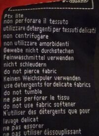 От сайта на СпортДепо: " Използването на прахове, белина и омекотители не е препоръчително, защото това би могло да запуши „дишащата” материя . Препоръчваме да сведете центрофугата до минимум, за да избегнете намачкване."