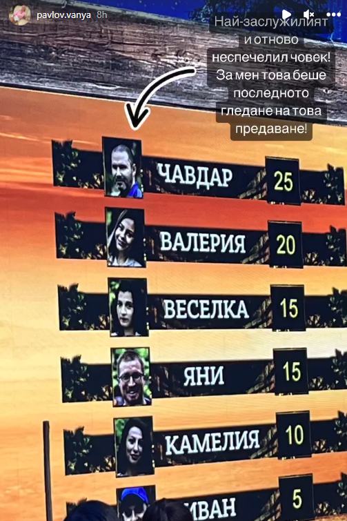 Иначе това е поредното изказване против Чавдар, явно наистина много играе за пред камерите и всъщност е съвсем различен (което подозирах още от предния сезон).