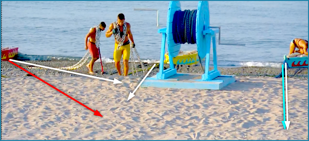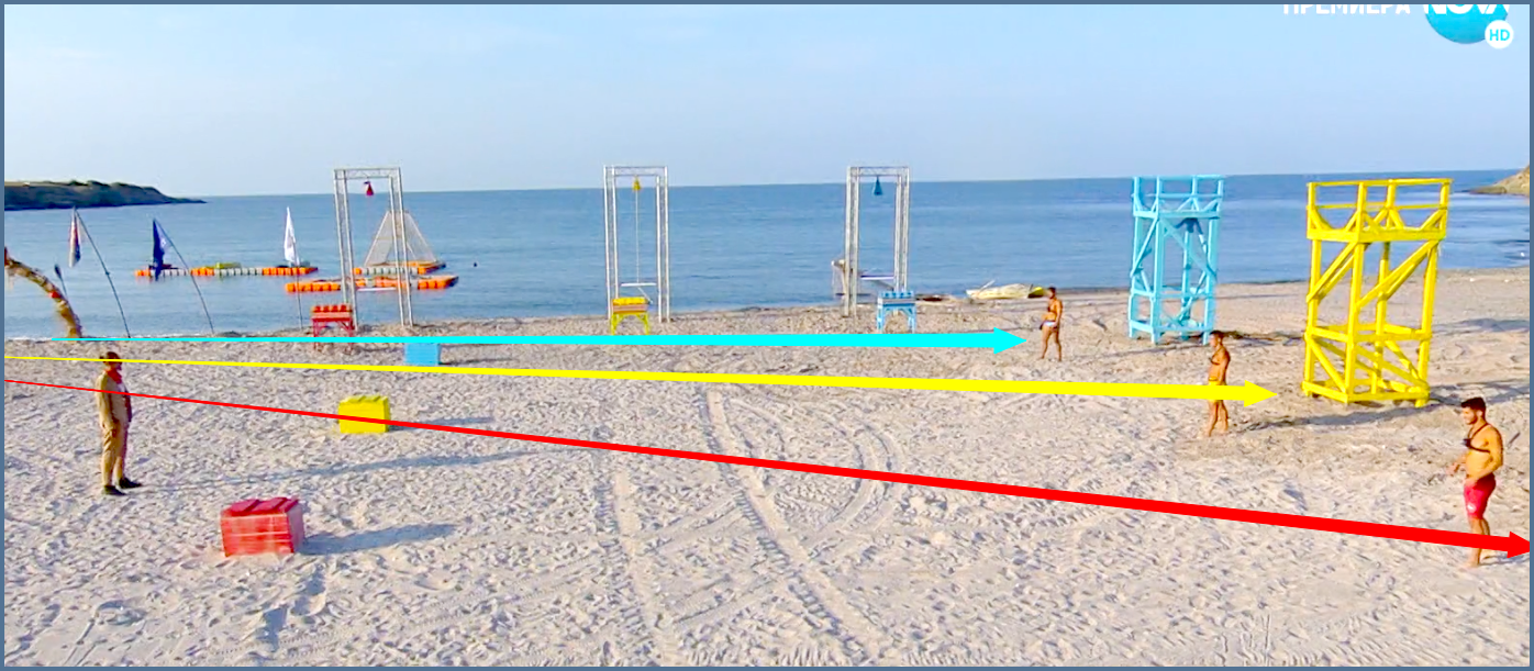 Тази на  Жоро, беше най-далече от водата(извън кадър е), а на Алекса най-близо, което прави пътят който той изминава в двете посоки, много по-кратък.