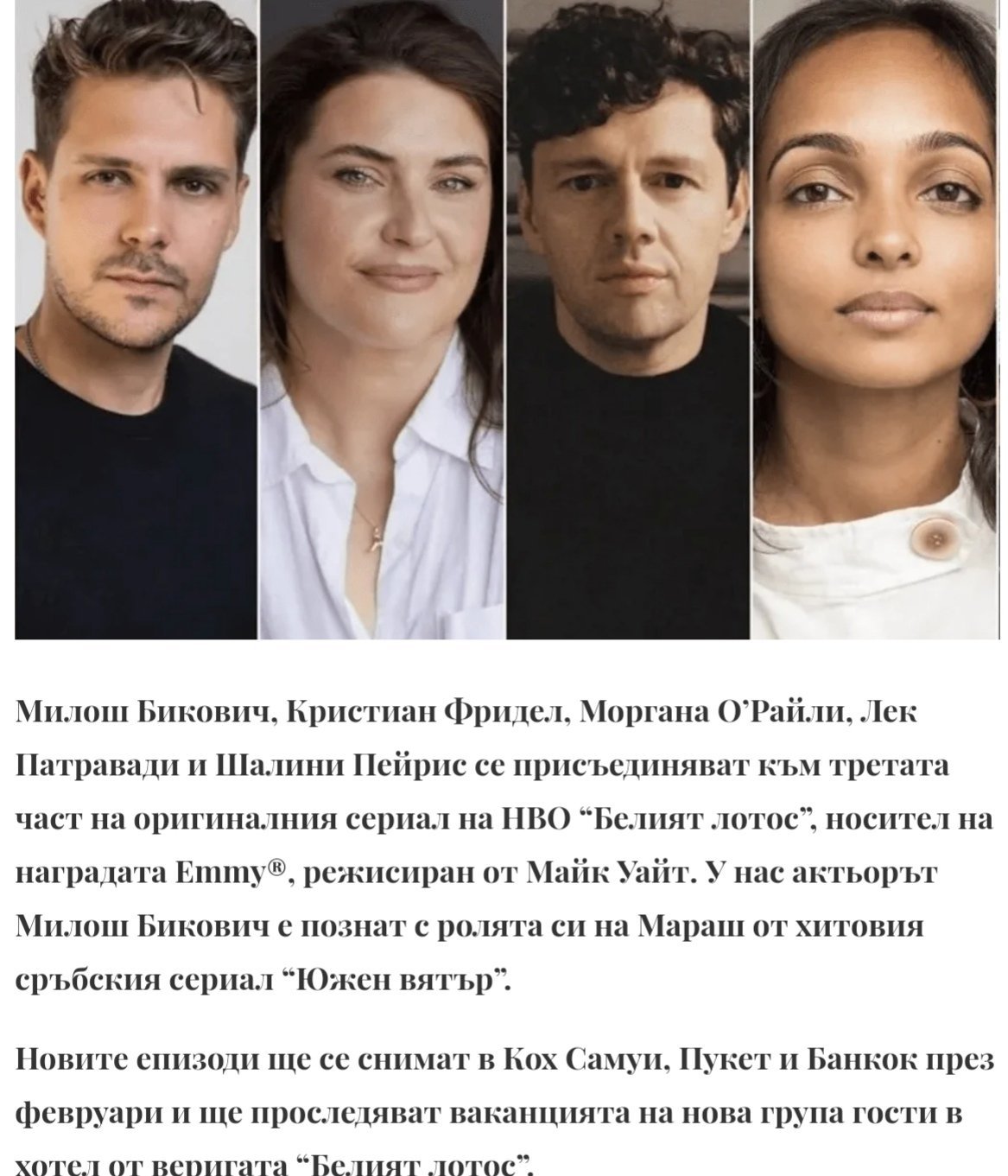 Какви са впечатленията за актьорския състав на сериала "Белият лотос"?