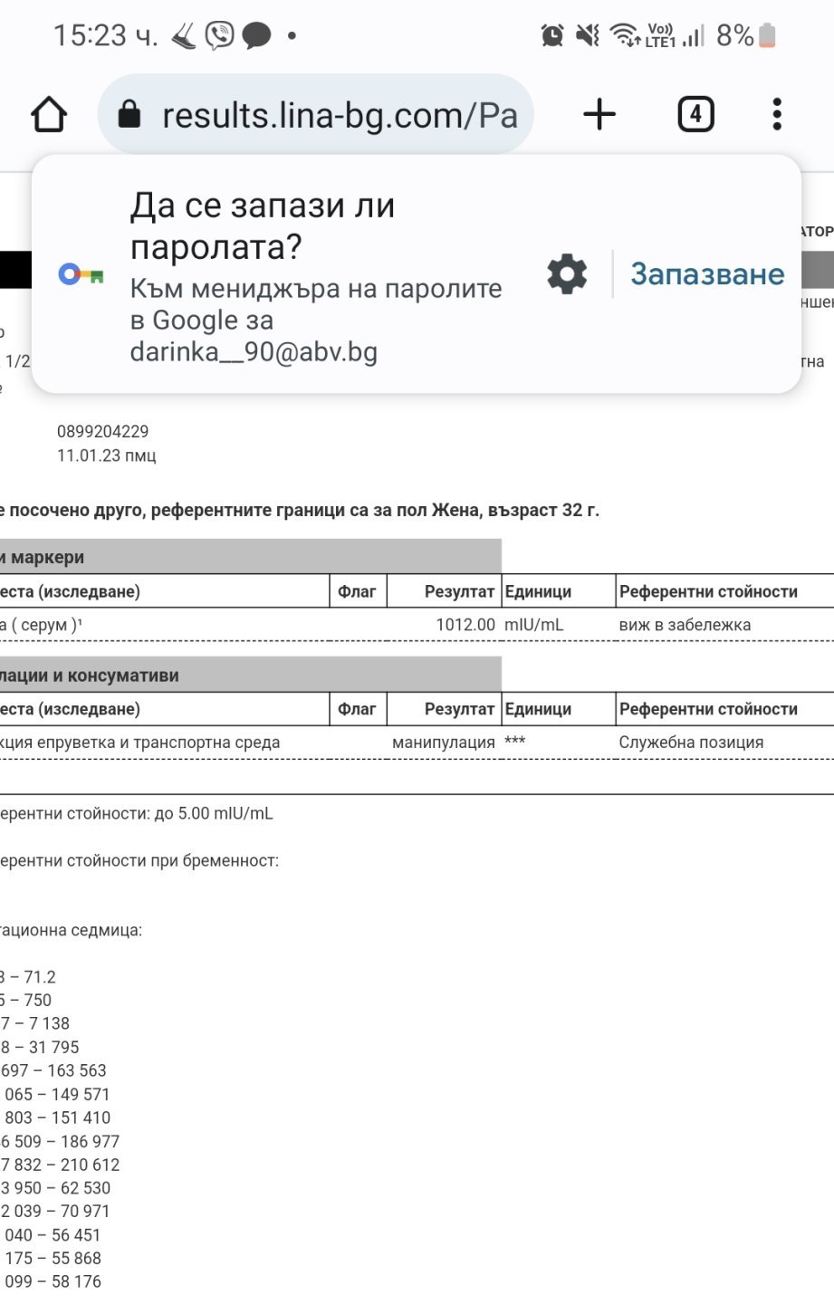 Момичета ,добър вечер 🌸 зачудих се ... възможно ли е на тези стойности(които са от днес) с 5 дневно закъснение ,на шуър чек-а да ми излиза едва едва забележима черта.. интересно ми е,не би ли трябвало чертата да е много плътна? С Моят мъж правим опити за 2-ро дете от близо 2 години,като миналата година по същото време загубих бебче в 3 месец 😪 много сме щастливи сега и не мога да се зарадвам като хората...