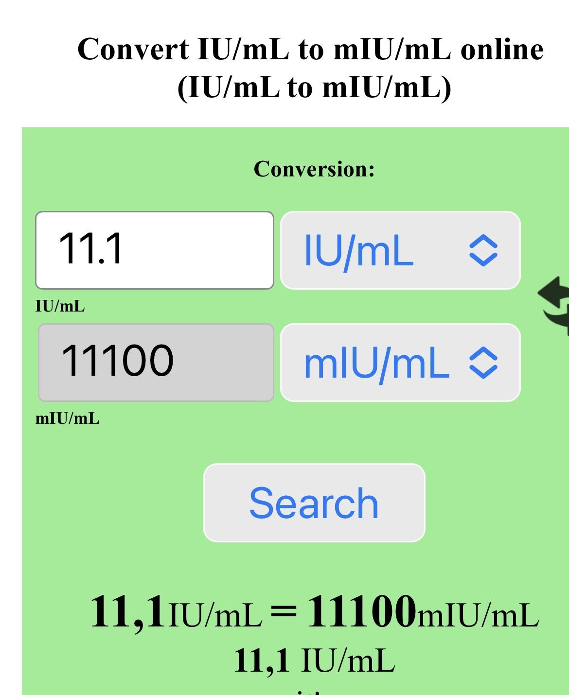 Здравейте стойности ЧХК 11,1mu/ml как да преобразувам в miu/ml? И като цяло как са трьи стойности