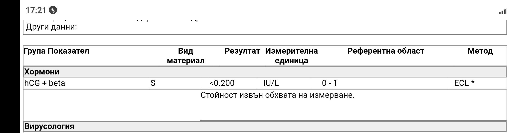 Категорично отрицателен е. “Стойност извън обхвата на измерване” означава, че концентрацията на ЧХГ е толкова малка, че не може да се измери.