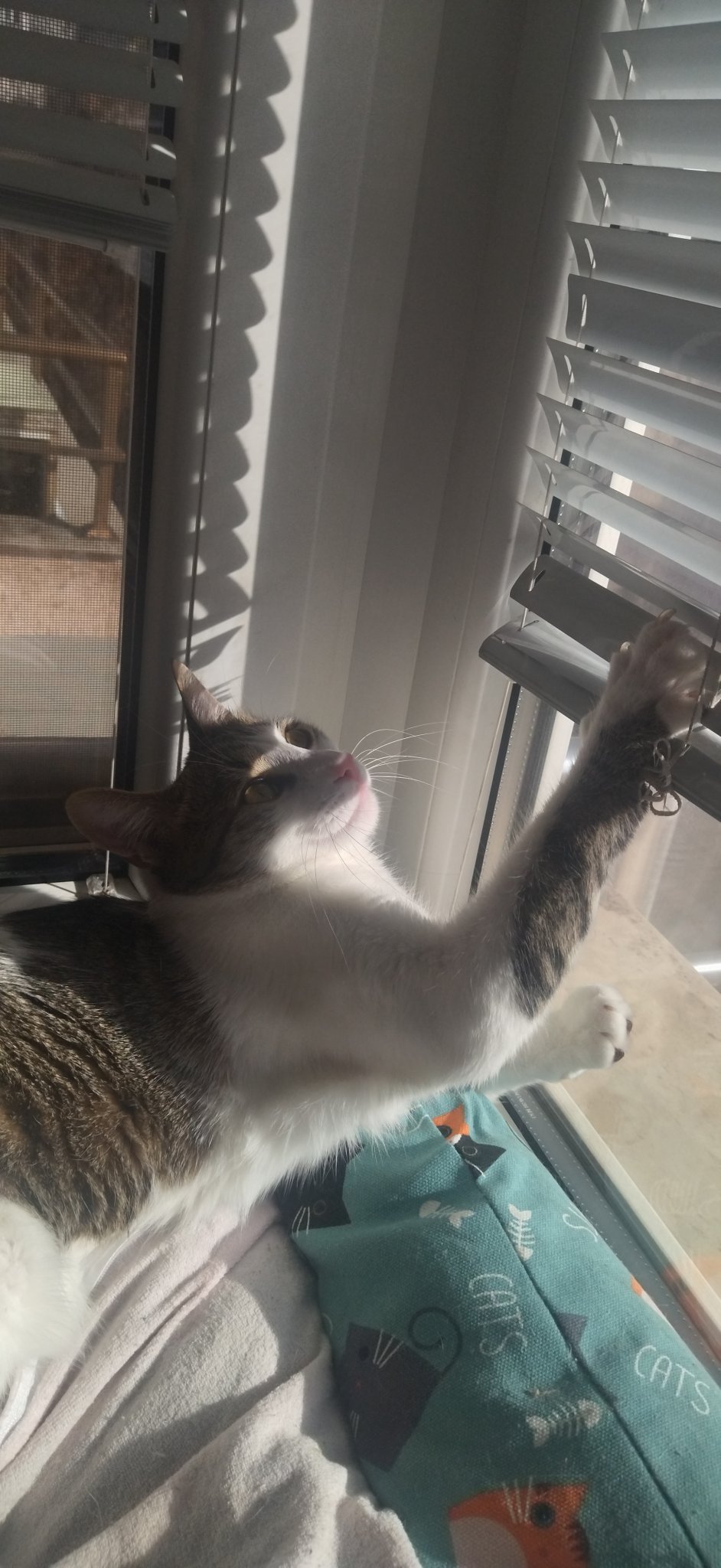 Ето и Оливия, която се препичаше сутринта на слънце и ремонтира щорите.