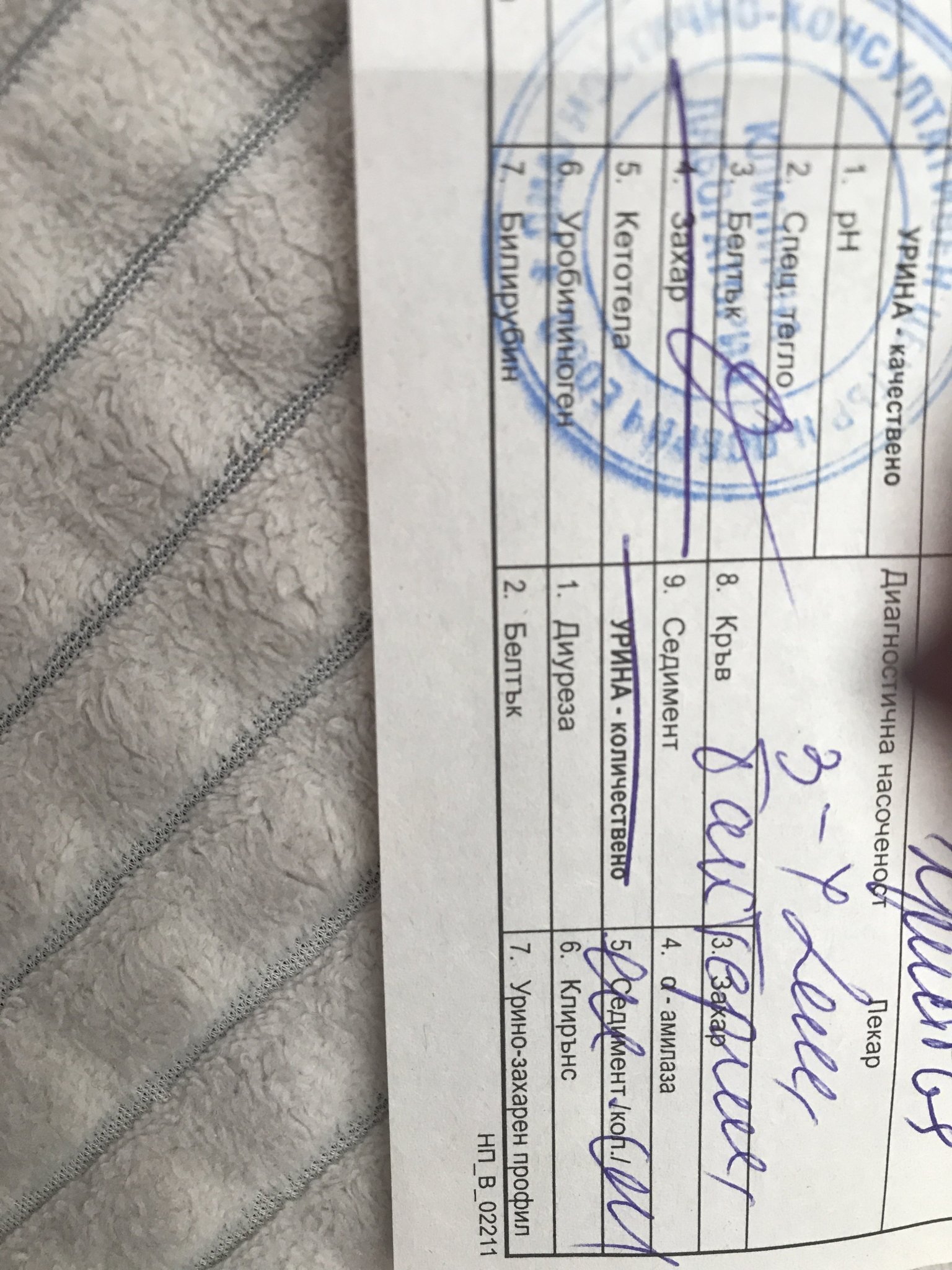 Ако това е резултатът от изследването има белтък, седимент, 3-4 левкоцити и бактерии. Другото не мога да го разбера. За този белтък задължително трябва да си обърнете внимание, както и за бактериите.