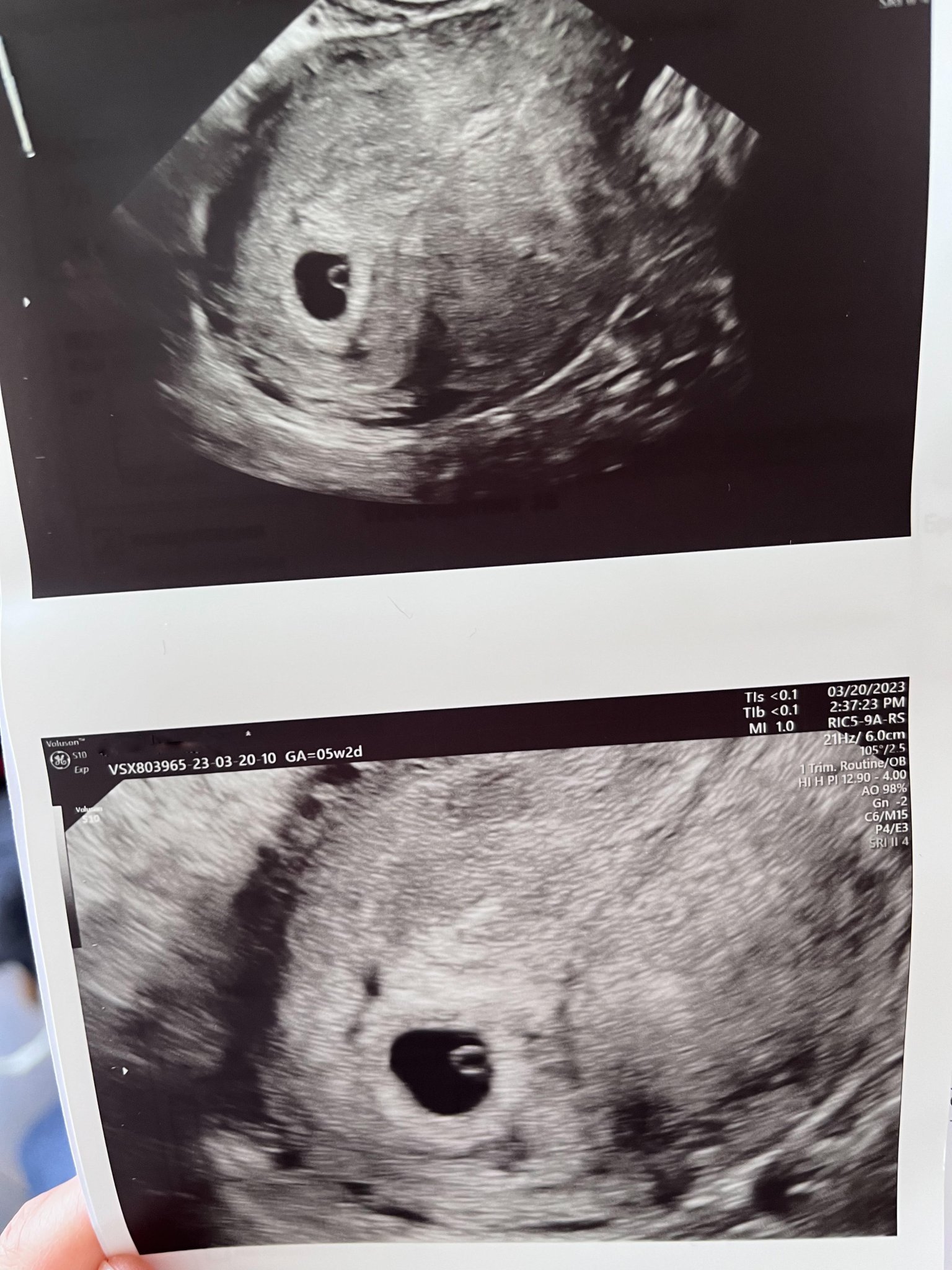 Момичета, бях на преглед и според снимката от ехографа съм 5 седмица + 2 дни. Последен цикъл 11.02. Обаче в приложението на телефона ми излиза, че съм 6-та и вече трябвало да има ембрион и сърдечна дейност. На прегледа обаче се видя само сак 9мм и ми казаха да ида другата седмица да се види ембрион и сърдечна дейност и аз нещо се филмирах естествено. Питах си АГто нормално ли е това, което вижда, за този етап - каза "да", но в мен остана това тъпо чувство, че нещо не е в ред. Сега, в коя седмица съм реално и на този етап време ли е да се е видял ембрион и сърдечна дейност, или е рано? Прикачам снимка, ако някой нещо разбира.