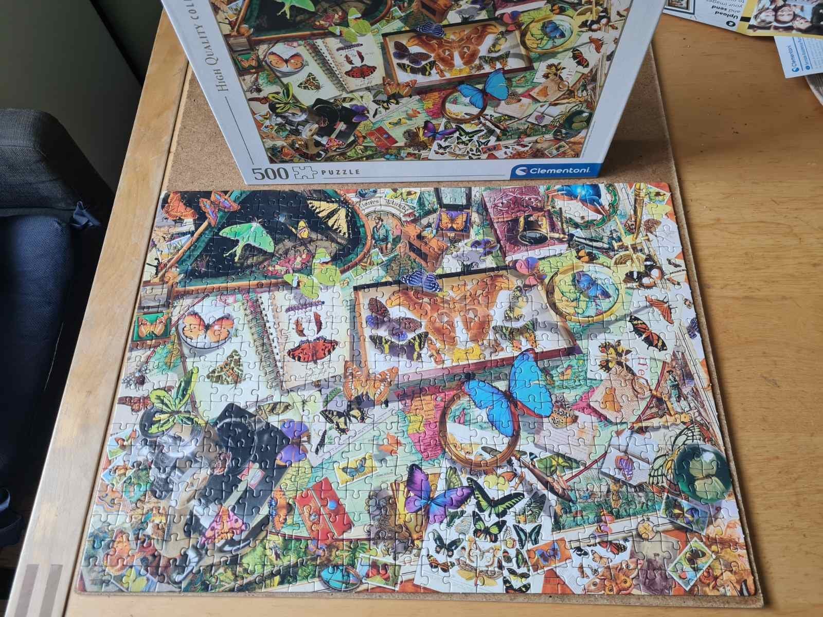 "Магазинче за чай" за 1:40мин. Определено не ми хареса. Не обичам пъзели с нестандартни части или които се разминават. Редих го в петък вечерта след като се прибрах от ресторант. Въодушевена от времената от състезания реших, че ще го наредя бързо. Като видях времето после си се смях на мене си и очакванията които си поставяме.
