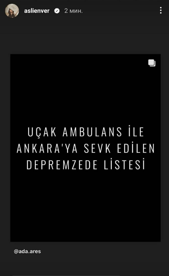 Аслъ публикува в своята история списък на жертвите на земетресението, които са били откарани с линейка в Анкара.