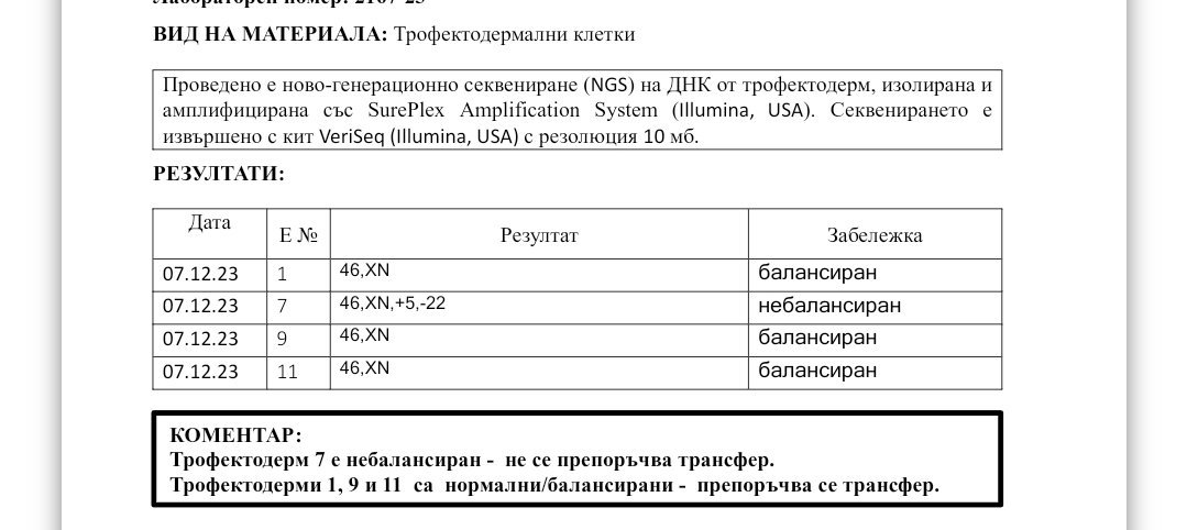 Juyii - това изписване на половите хромозоми значи че просто не са могли да определят пол, така ли? Засекли са Х, но за втората не са могли да преценят? Питам понеже имам три замразени ембриона с резултат 46, NN.