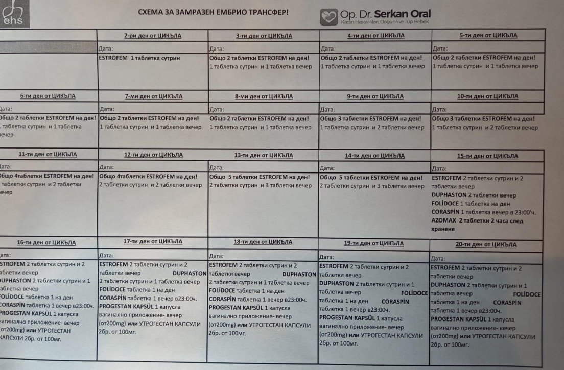 Прикачвам ви схемата,за да се уверите с очите си как няма инжекции,пропуснала съм,че има 1 вагинална от 200 прогестерон.