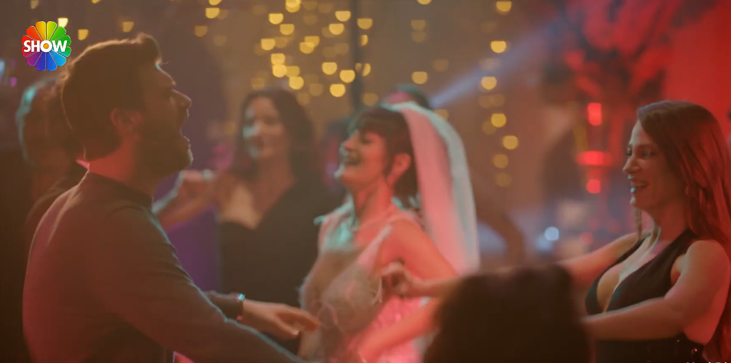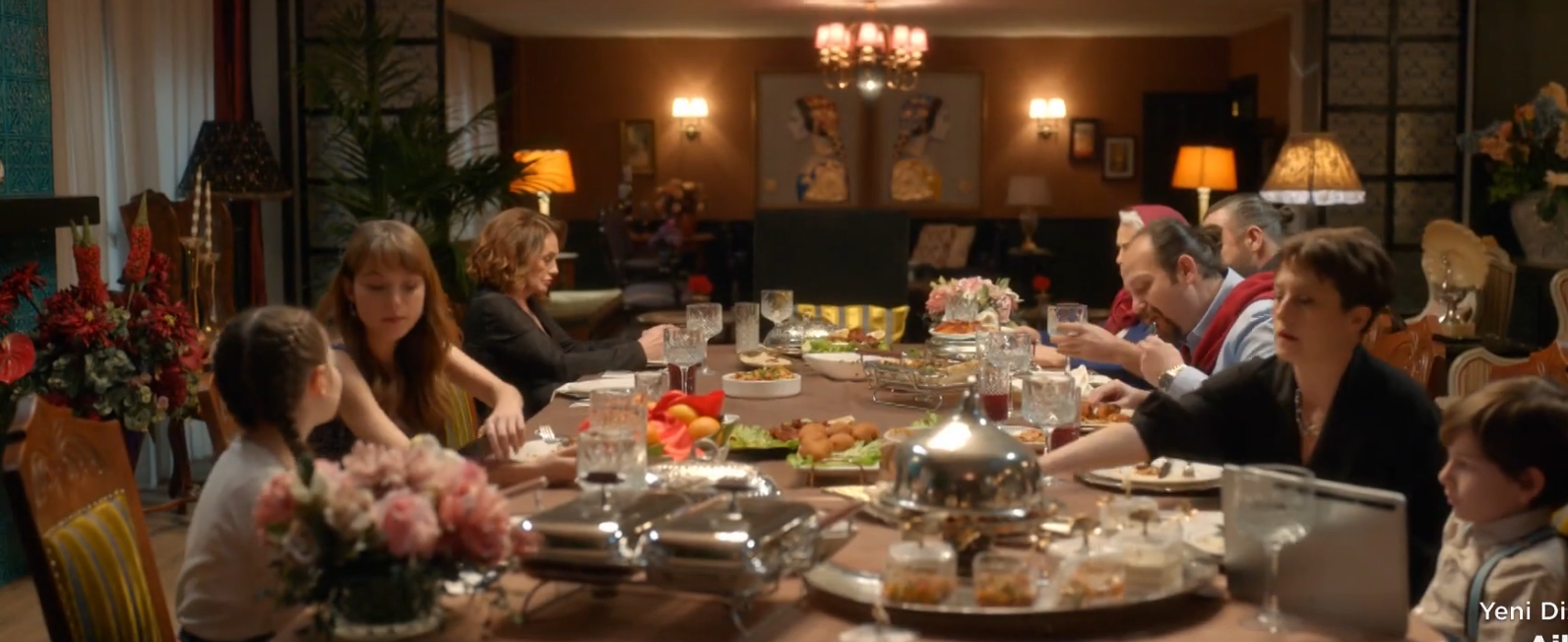 Джихан е с чаша в ръка, а Толга е с вилица в устата.