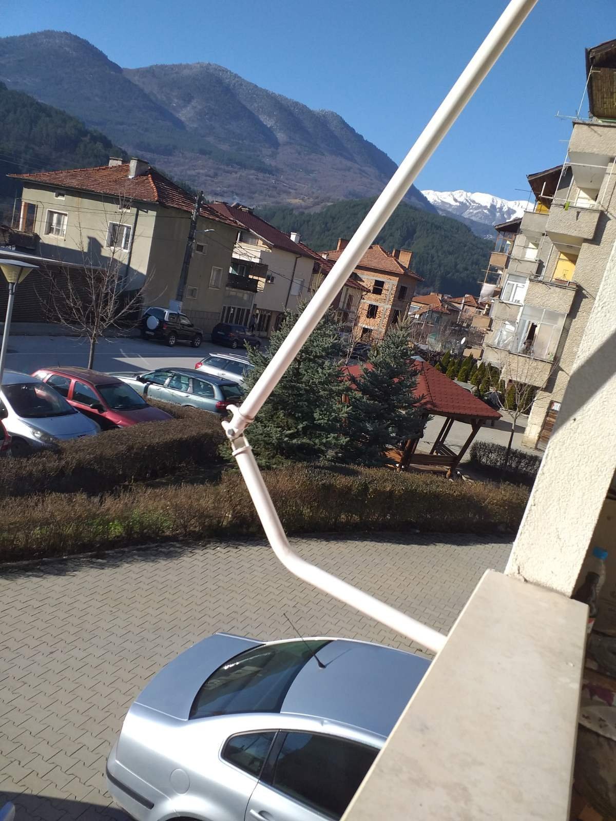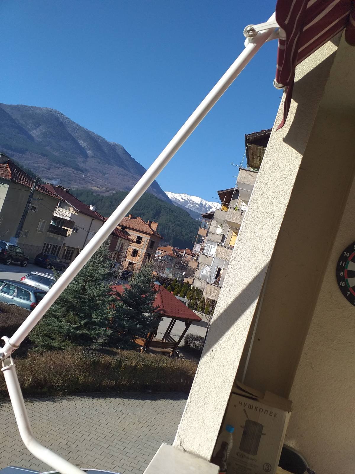 Тук е ярък,сленчев ден.Няма едно облаче на небето,къщите греят от слънцето в своите светли цветове-жълти,розови,бели.Това най-много харесвам тук-много светлина.Срещу прозореца ми има няколко от пиринските върхове,но най-високия от тях е гол/без гора/, покрит е със сняг и свети много ярко от слънцето.Това ми влияе много на настроението.Вчера се разхождах доста и днес ще направя същото.