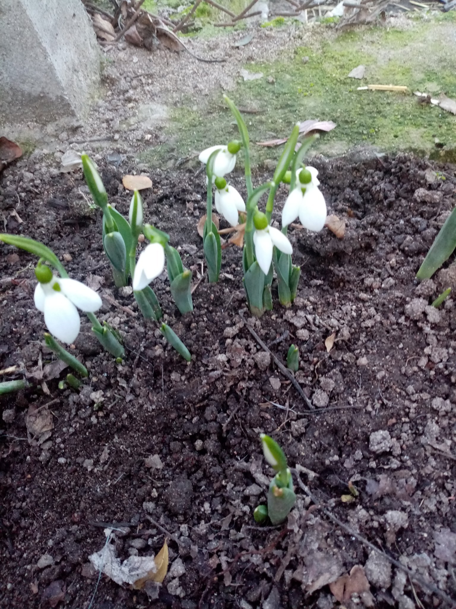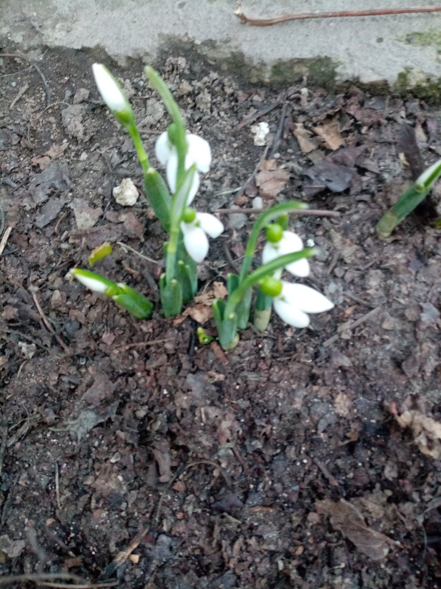 Когато времето не е мразовито, моите първи кокичета винаги започват да цъфтят по това време. Ако навали сняг се задържат доста дълго. Отдолу им е добре и като се стопи снегът  веднага се  надигат и са едни едри и красиви!Миналата година хвана сух студ, те клюмнаха на земята. Времето се оправи и те отново се вдигнаха.