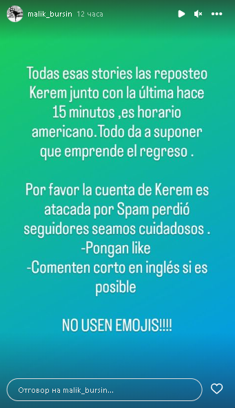 Моля , акаунтът на Керем е атакуван от спам, той загуби последователи, нека внимаваме.