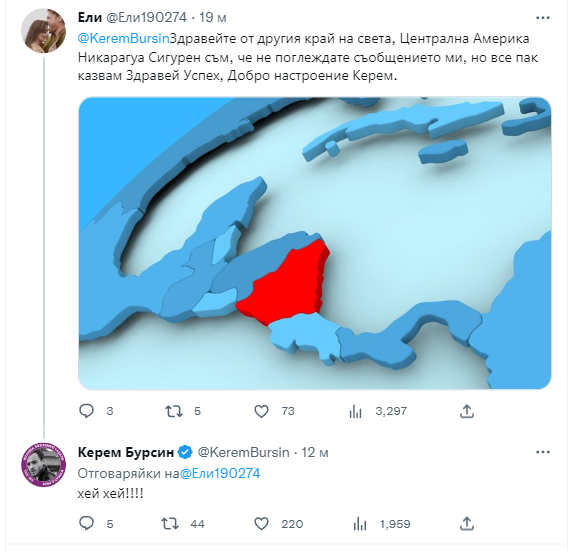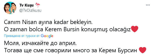 Керем е активен в Туитър. Ако искате да ви отговори - слагайте си профилна снимка на Ханде или Ханкер за да сте с предимство  Stuck Out Tongue Winking Eye