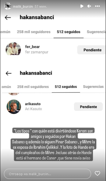 Момчетата, с които Керем се забавлява, са приятели на Хакан Сабанджъ и се следват един друг. Той пък е следван от Пънар Сабанджъ и Михре, бившата жена на Ибрахим Челиккол и много добра приятелка на Гамзе. Снимката, на която е Ханде е от рожденият ден на Михре. Дори зад Ханде е братът на Джанер, Мелих който е с приятелката си.