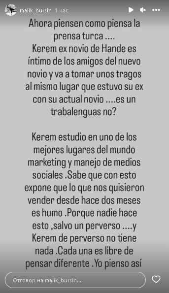 Керем е учил на едно от най-добрите места в света по управление на маркетинга и социалните медии. Знае, че с това се излага, че това, което искаха да ни продадат два месеца, е ДИМКА. Защото никой не го прави, освен перверзник... а Керем няма нищо общо с перверзник. Всеки е свободен да мисли по различен начин. Така мисля.