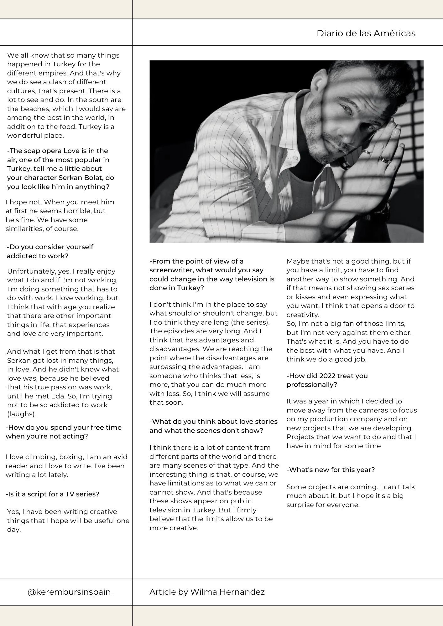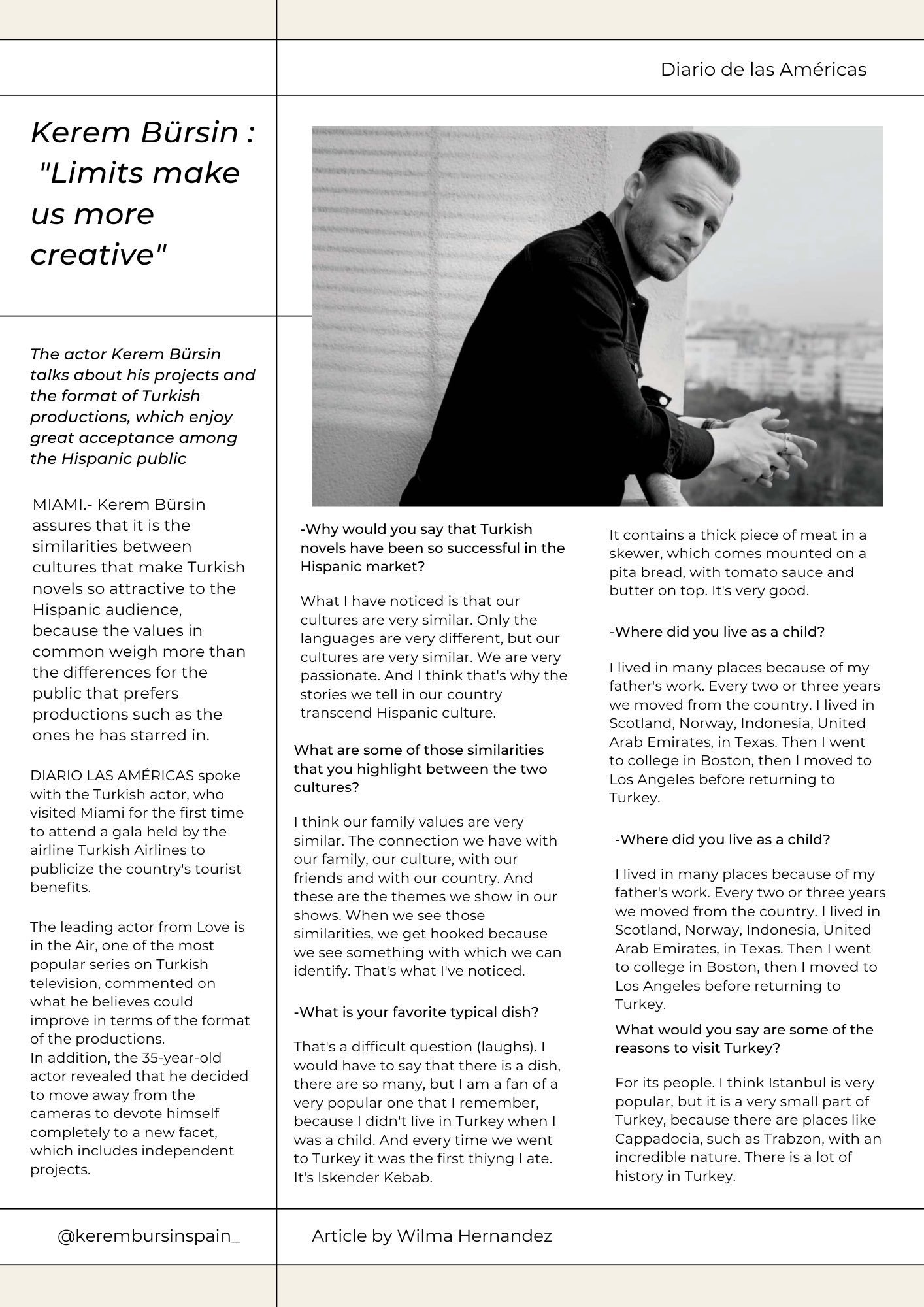 Превод /английски/ на интервюто на Керем за Diario de las Américas