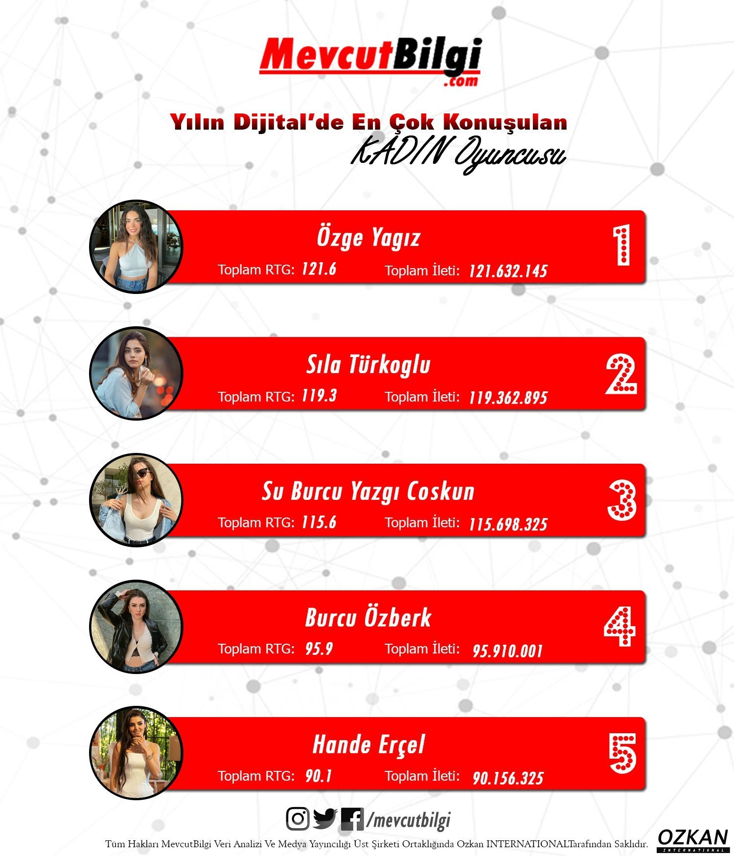 Най-голямата агенция за рейтинг на социални медии в Турция, MevcutBilgi обяви кои са Най-обсъжданите актриси/актьори за 2022 година.