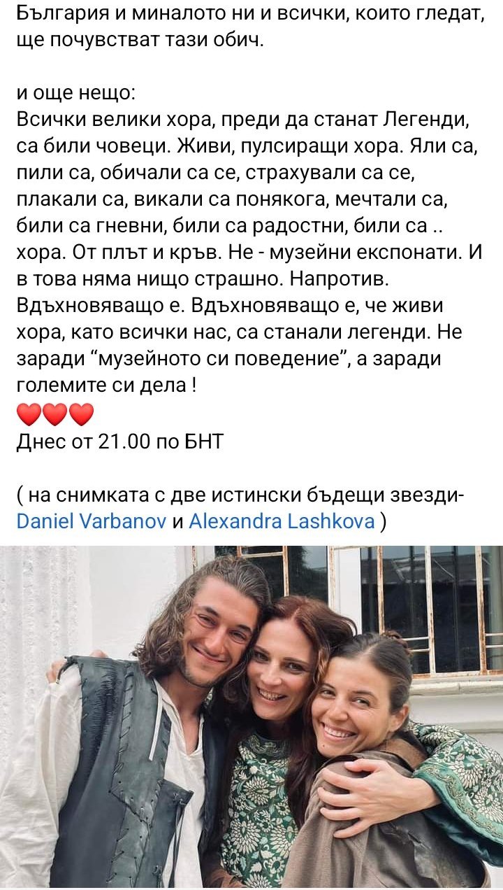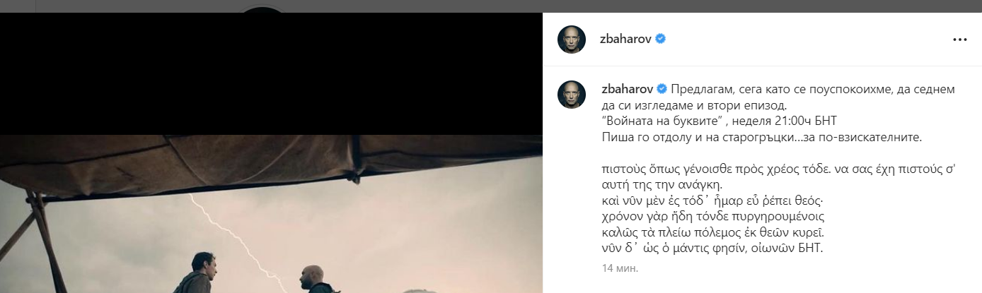 Вижте му последния пост на Бахаров в инстаграм. По-добре е нищо да не казва и пише, да си споделя клипове и снимки, но тези коментари.... Аз никога не бих писала разни обиди по профилите на актьорите, всъщност каквото и да е не бих писала под техните снимки и лични страници, не съм видяла и други да пишат и да ги обвиняват в нещо. Затова има страница на сериала във фейсбук, да си пишат хората мнението и да го обсъждат с други зрители. Не знам защо актьорите трябва да се впускат в разни словесни битки, а пък арогантността още повече отблъсква.
