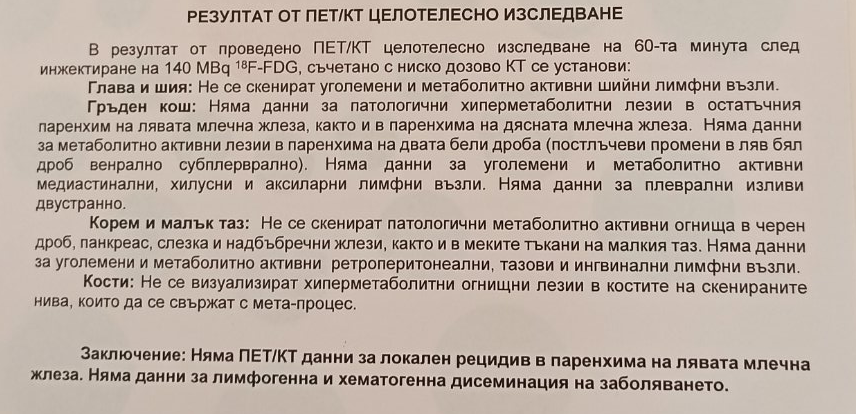 Сноууайт, малко остана до ПЕТ-а, дано после не се бавят много с резултата и да действате с лечението нататък. Ще се прояснят нещата! 🍀