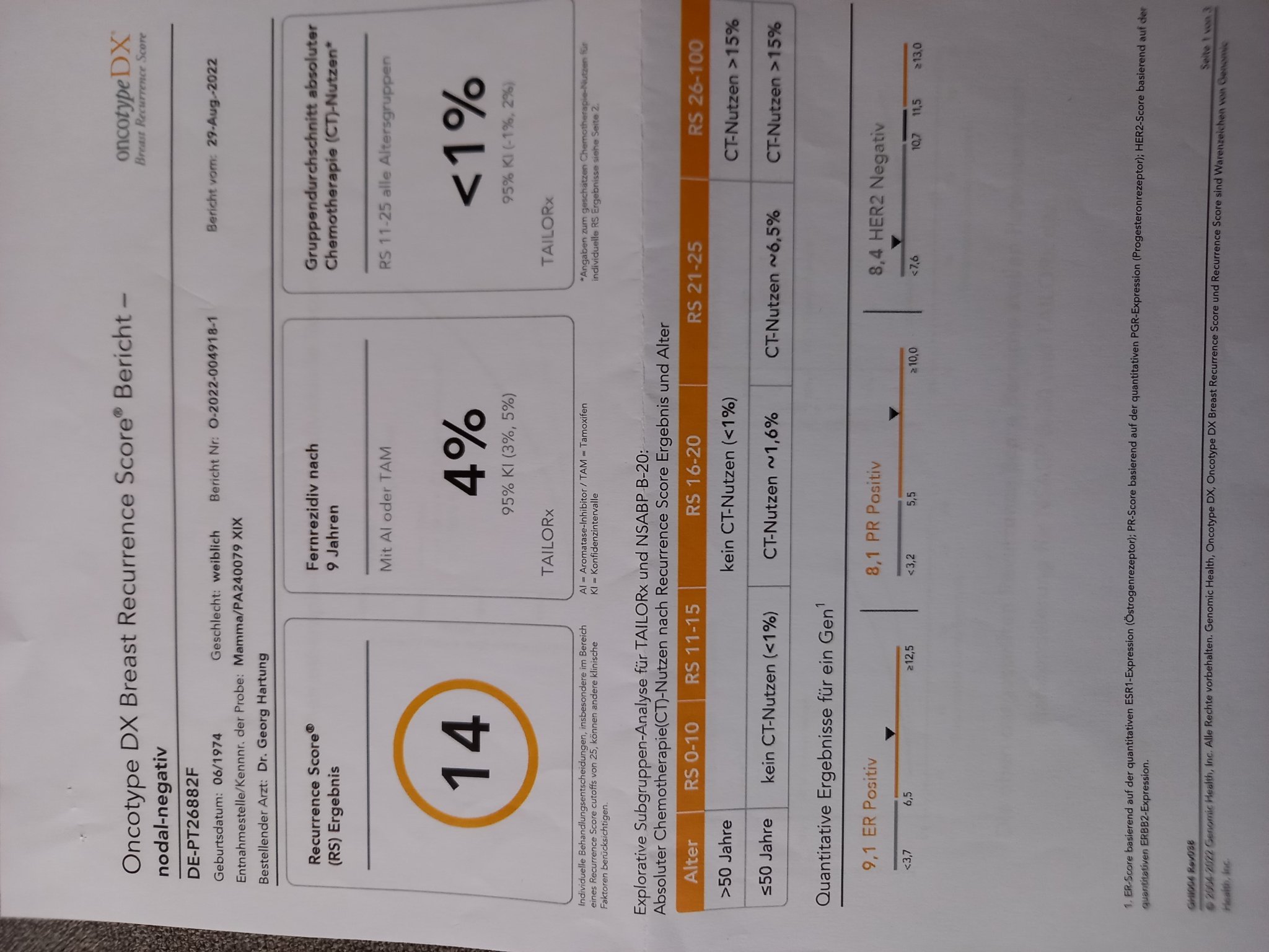 Понятие си нямам,но както каза Ели_дечкин, че е супер странно ,че не са се застраховали с химиотерапия. Точно възоснова на този тест нямам химия. Ще ви снимам резултатите които ми изпратиха от някакъв мед. център по -Histologie, Zitologie,Molekulare Diagnostik. Може някоя от момичетата да знае какъв е този тест,както вече предупредих много съм боса по темата.