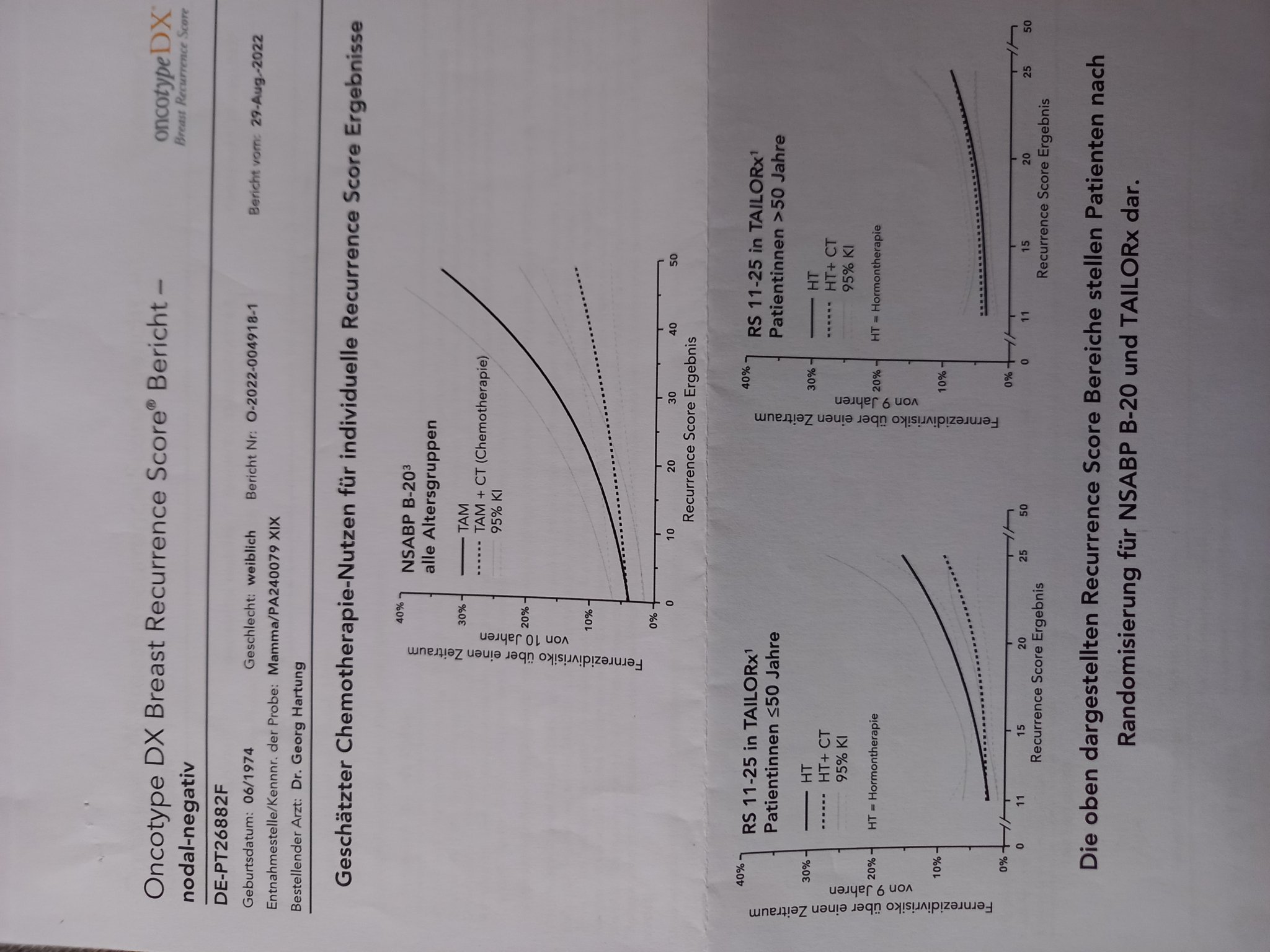 Едно светило в националната онкологична болница ми каза така- бил почти тройно негативен и щял да го лекува като тройно негативен. И веднага- химиотерапия да се почва, а рака е 0.7 мм в първа фаза, без разсейки. Преди малко се връщам от Токуда и онколога там ми каза, че може и да не се наложи химиотерапия. Трябва на този етап операция. За тестовете каза, че е добре да се направят, ако имам финансова възможност- давали много добри отговори дали има нужда изобщо от химиотерапия и кои лекарства и схеми са най-подходящи. Двата теста, обаче излизат 10к. Сега чакам консултация по документи с онколози от Турция и Германия. От Израел ми казаха, че химиотерапия там се назначава само след този тест, който определя, дали и до колко химиотерапията ще повлияе.