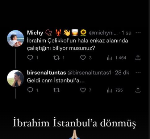 Днес са питали Бирсен Алтънташ  знае ли дали Ибрахим  още работи в раьона на останките.Бирсен отговаря "Пристигна в Истанбул"....Днес от него няма никаква реакция в соц.мрежи.