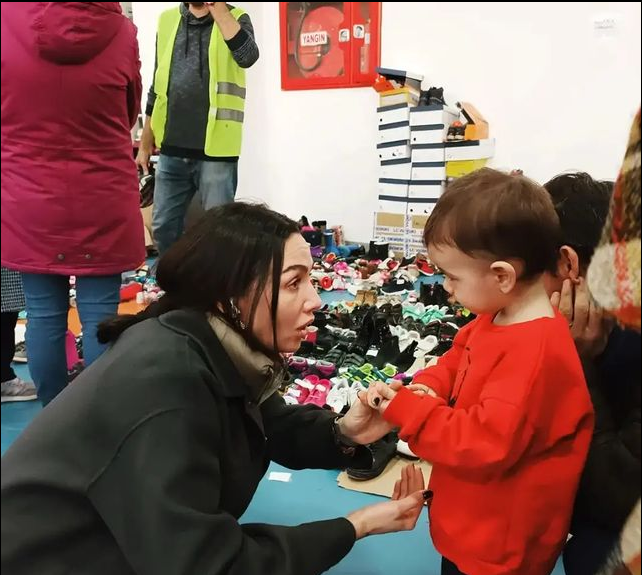 Бирдже Акалай в Младежкия център на Бодрум,където помага за  настаняване и раздаване на помощи, на останали без покрив,семейства.