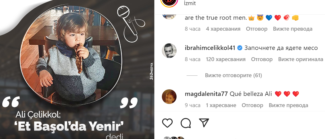 Днес излязоха нови снимки на Али и пишат,че той е с баща си в Измит в познатия ни ресторант @basolsteakhouse.Ресторанта публикува рекламна снимка на Али на която пише "В Башол се яде месо"казва Али Челиккол.