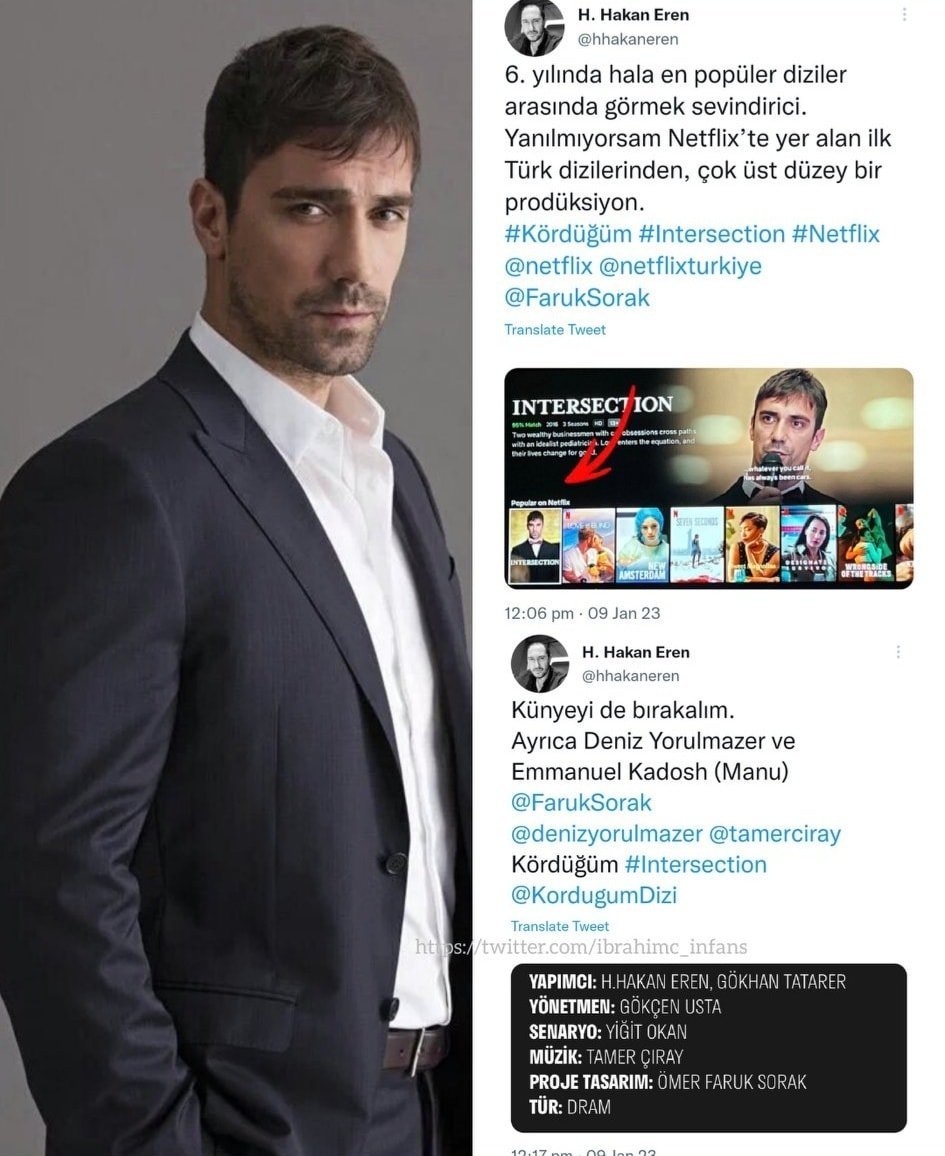 "Радвам се да видя, че след 6 години шоуто на #Kurdugum все още е в тренд и по Netflix. Това е първият турски сериал, излъчен на платформата Netflix.